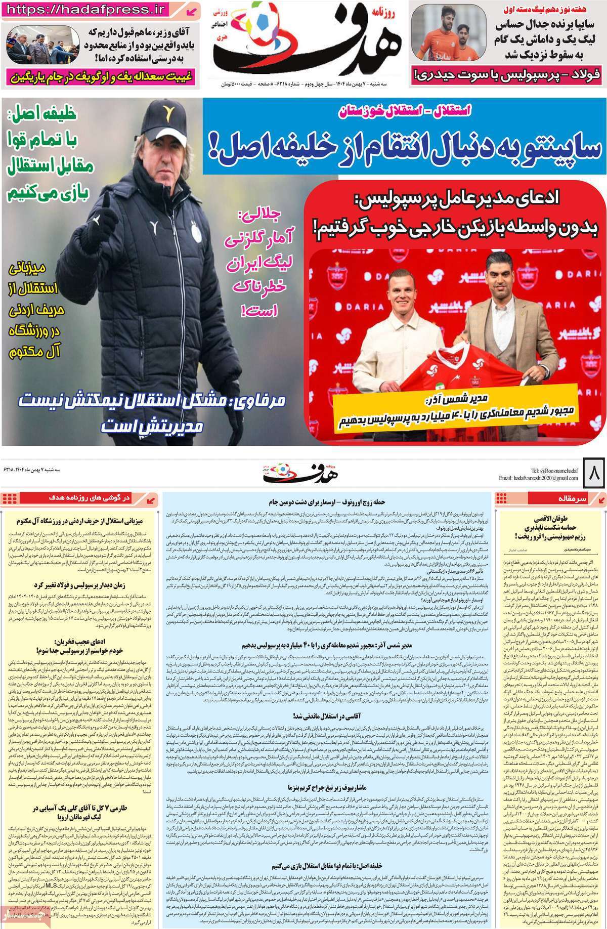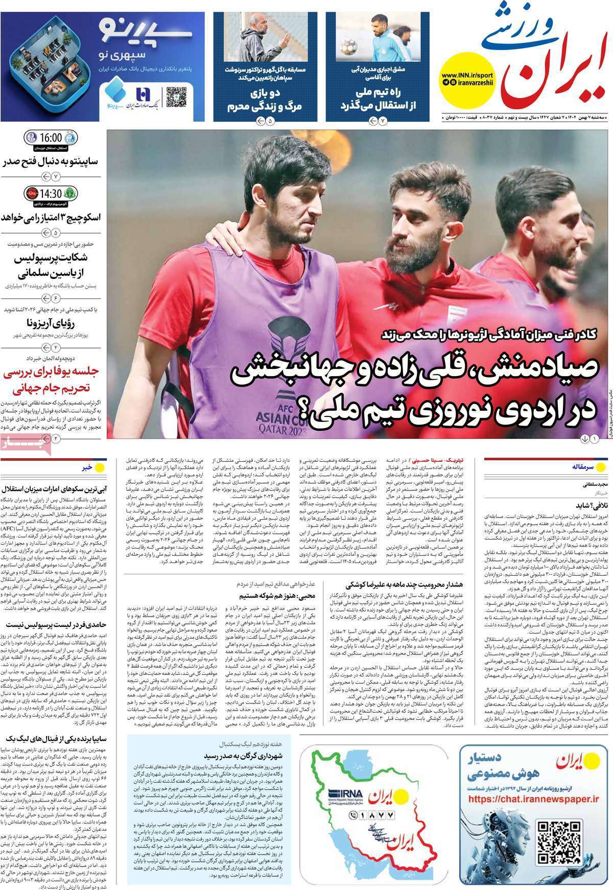 به گزارش گروه ورزشی خبرگزاری صدا و سیما، نیم صفحه نخست روزنامههای ورزشی سه شنبه ۷ بهمن ۱۴۰۴ را مشاهده کنید.