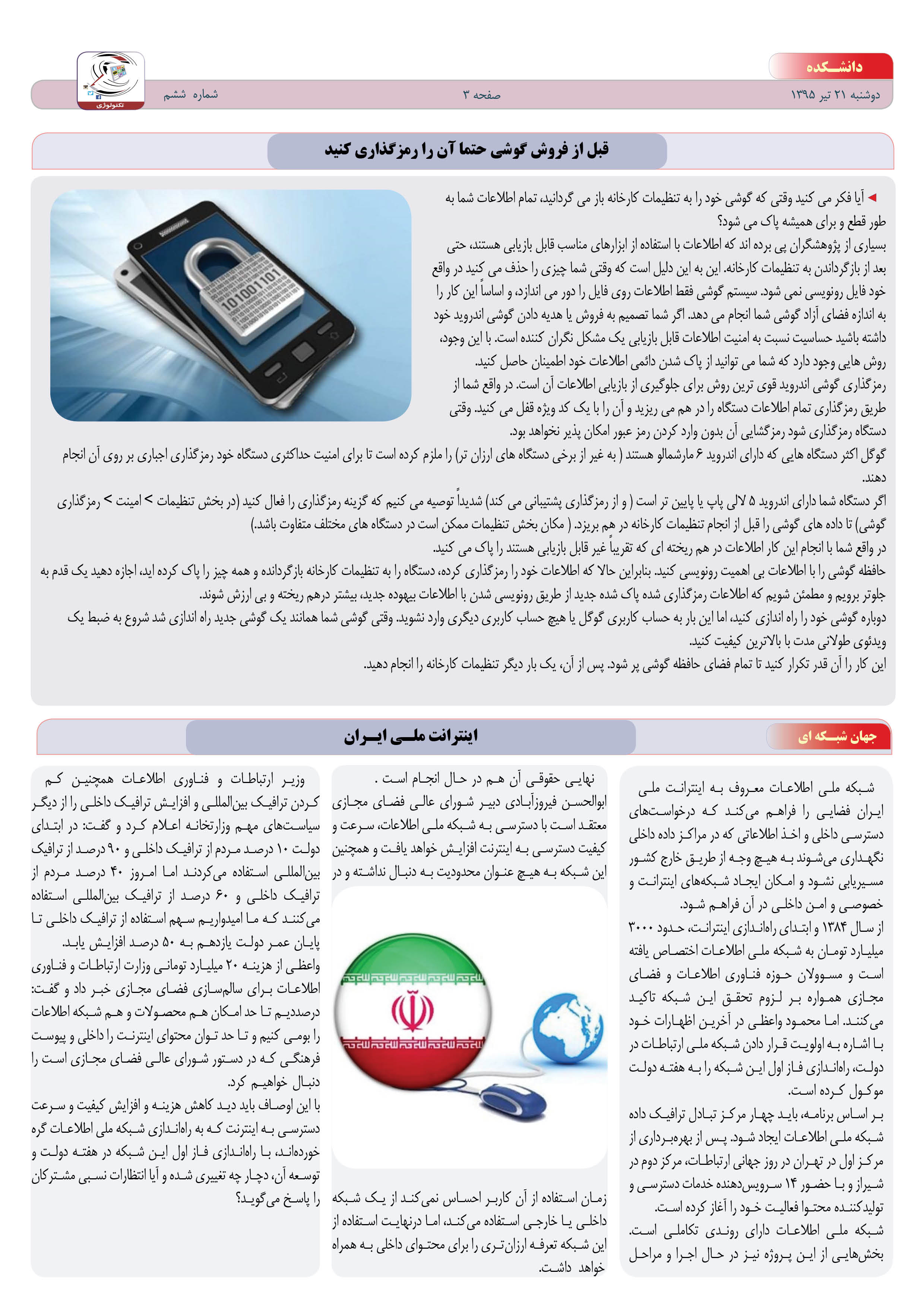 دانلود نسخه پی دی اف شماره ششم ویژه نامه تکنولوژی