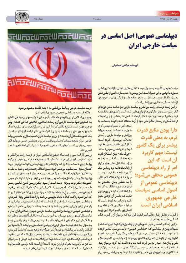 دانلود نسخه پی دی اف شماره بیست و پنجم ویژه نامه دیپلماسی