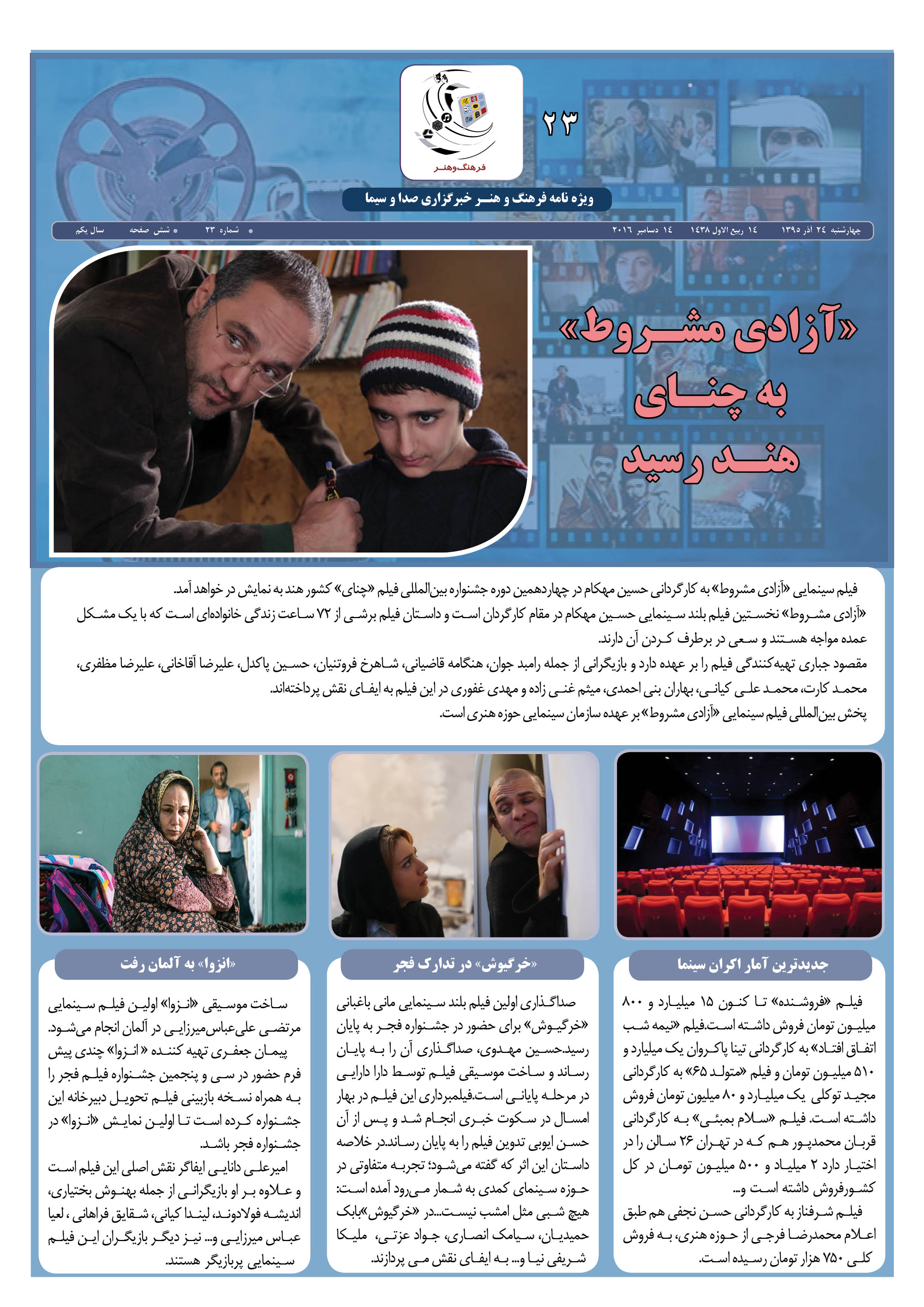 شماره 23 فرهنگ و هنر؛ آزادی مشروط به چنای هند رسید