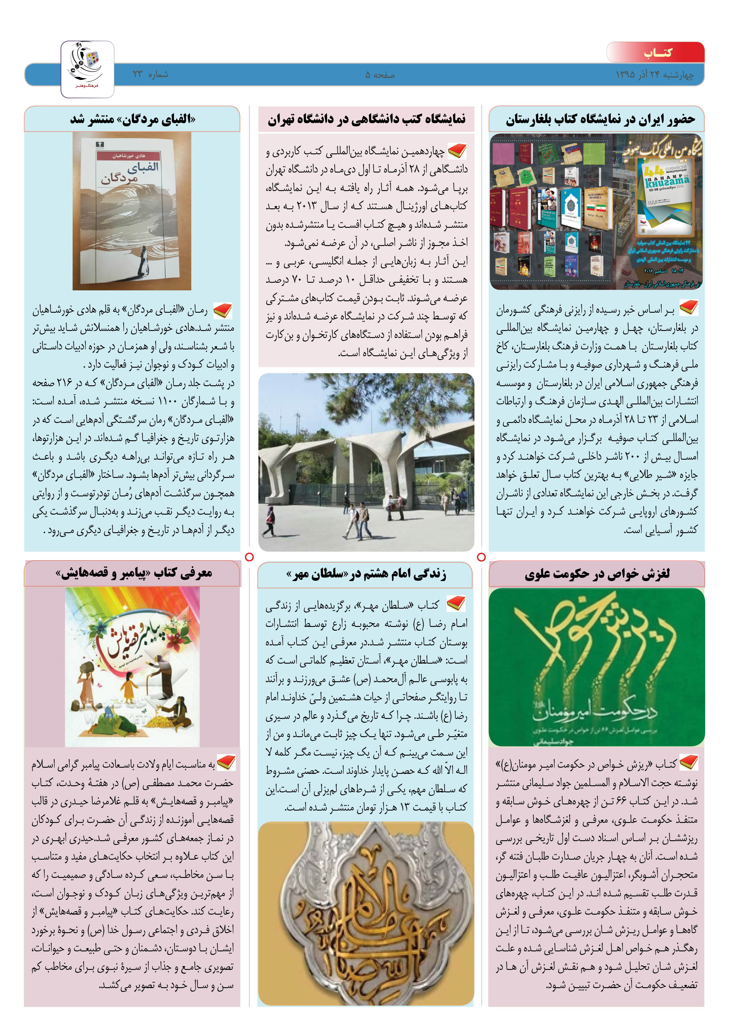 دانلود نسخه پی دی اف شماره 23 ویژه نامه فرهنگ و هنر