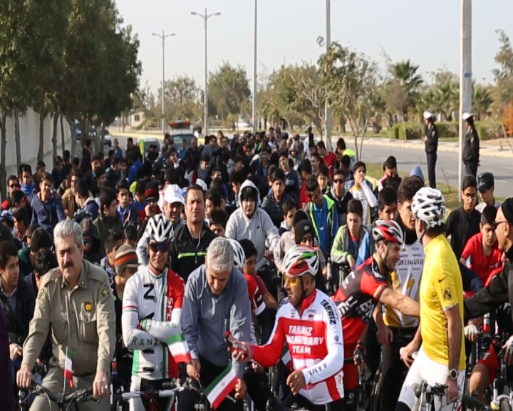 همچنین به یاد این لحظه تاریخی و باشکوه بوق شناورها در خلیج فارس به صدا درآمد و موتور سواران مسیر فرودگاه تا گلزار شهدای بهشت صادق را طی کردند.