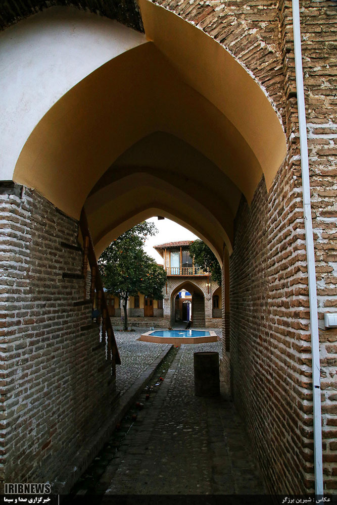 این مدرسه دارای چهار ایوان در چهار سوی شرق، غرب، شمال و جنوب میباشد. هر چهارتای این ایوانها بر فراز خود طبقه دوم دارند که از داخل حیاط مدرسه دارای پیشخوان تخته ای با نرده های خراملی شده ی زیبا هستند که چشم انداز بر طبیعت مصنوعی و دست ساز حیاط ( درختان، باغچه، حوض اب و … ) دارند.