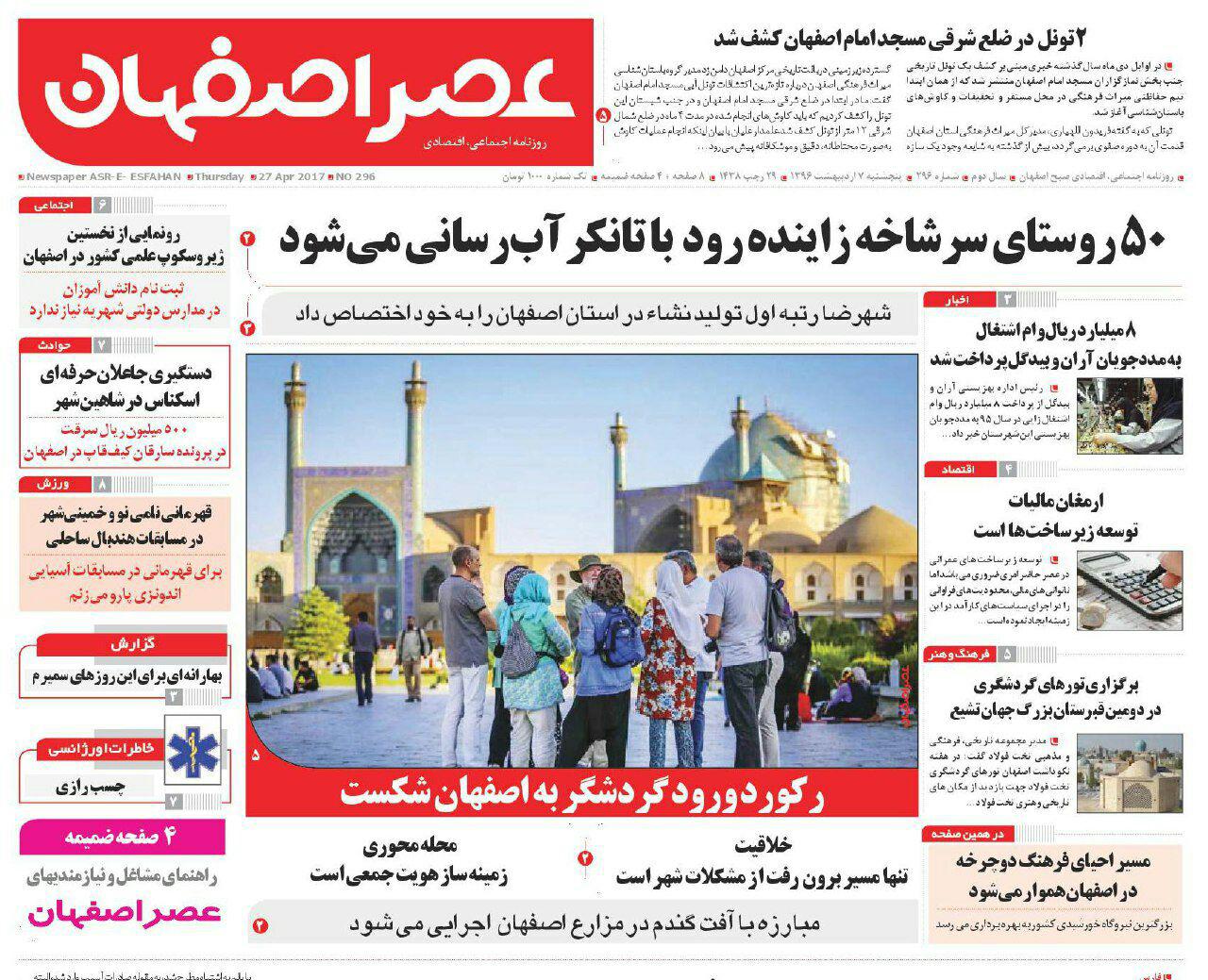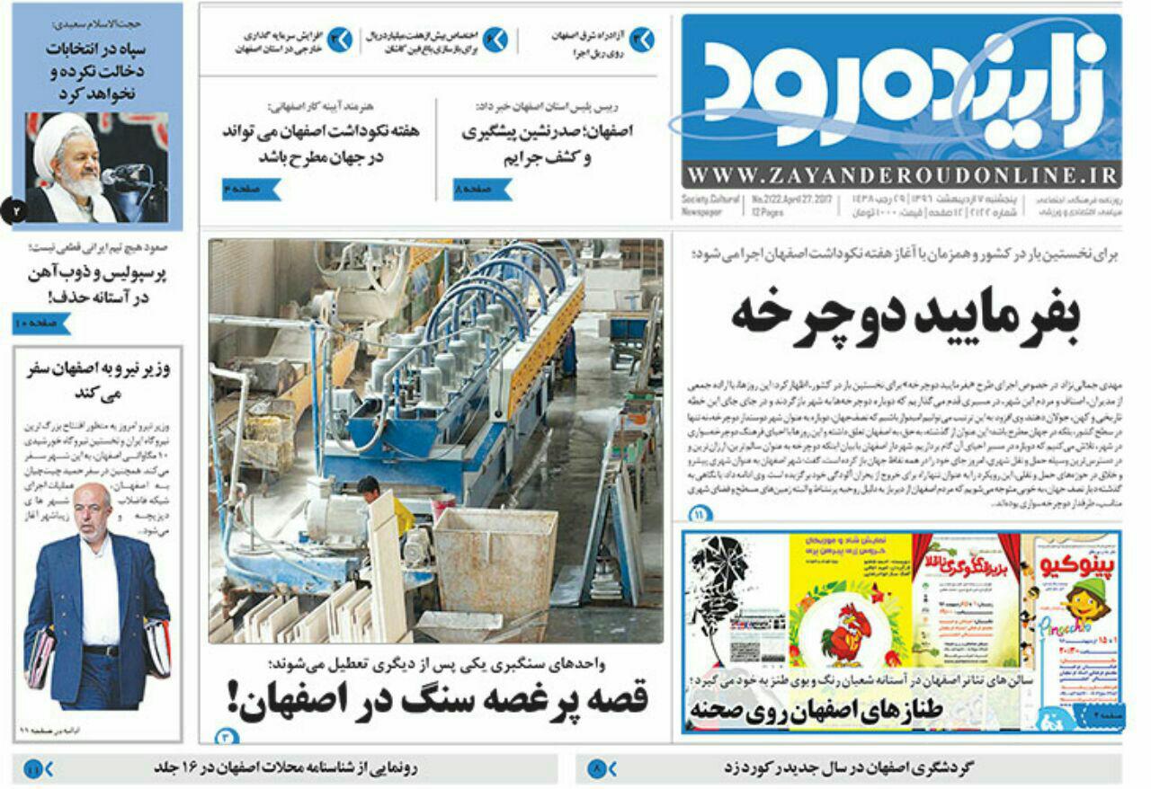 صفحه نخست روزنامه های اصفهان ، 7 اردیبهشت 1396
