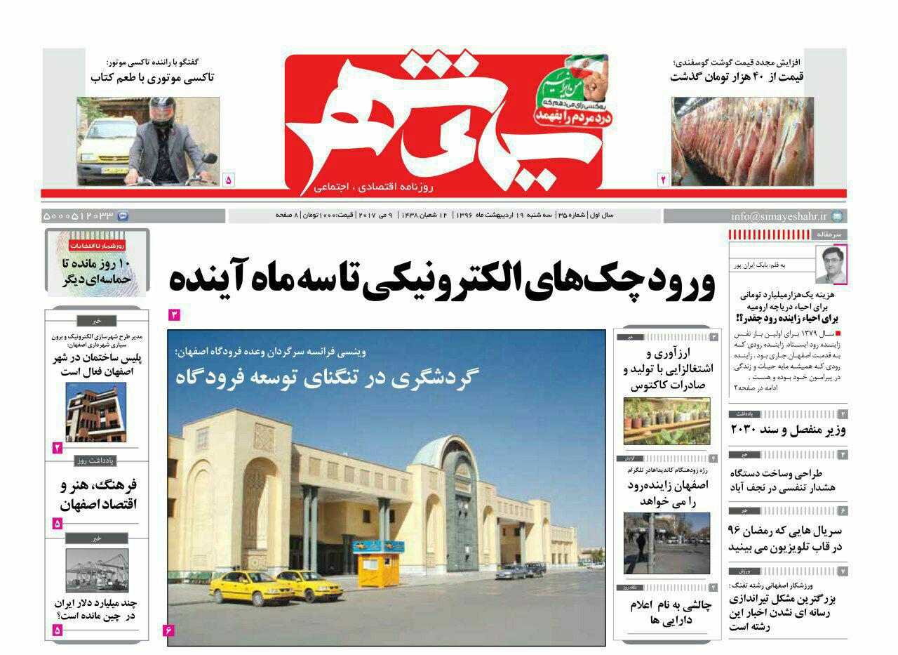صفحه نخست روزنامه های اصفهان ، 19 اردیبهشت 1396