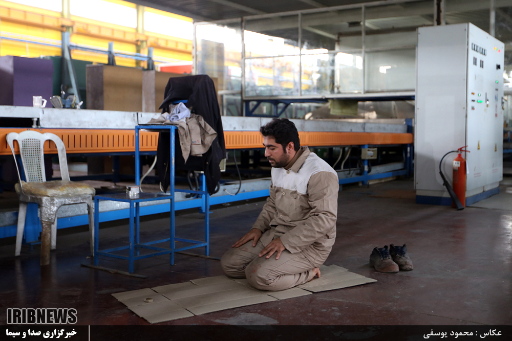 جلوتر که رفتیم کارگران سخت مشغول کار بودند. خط تولید آئینه هایی که حالا درخاورمیانه یکه تاز است.