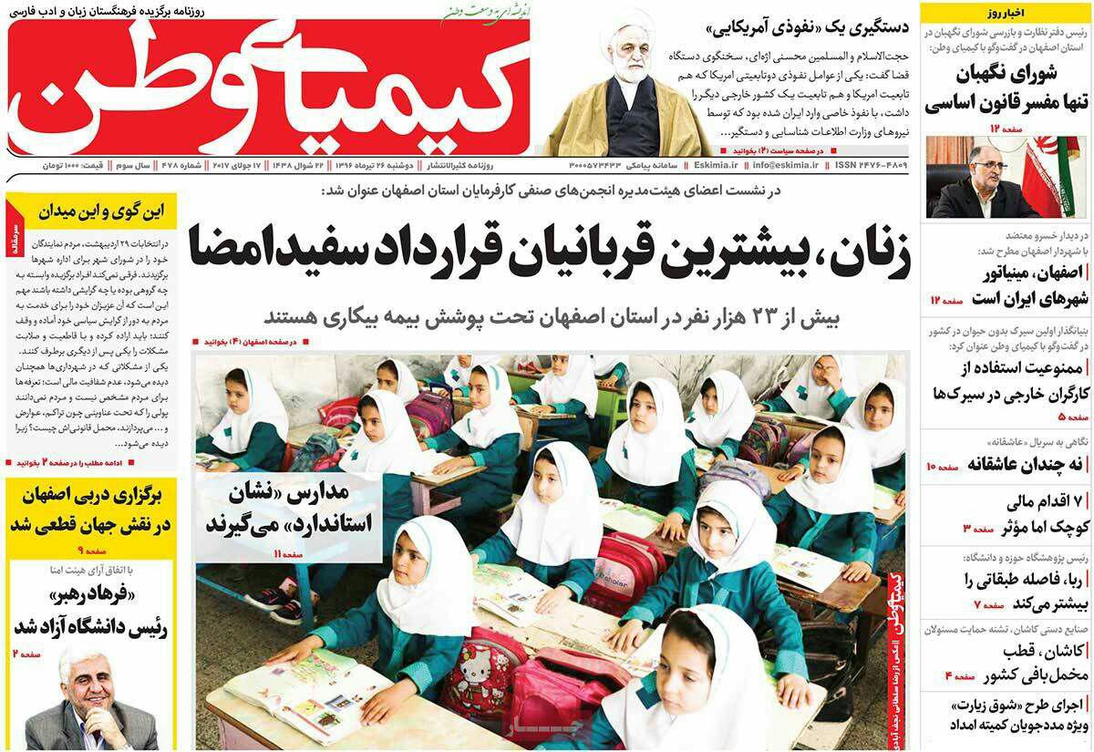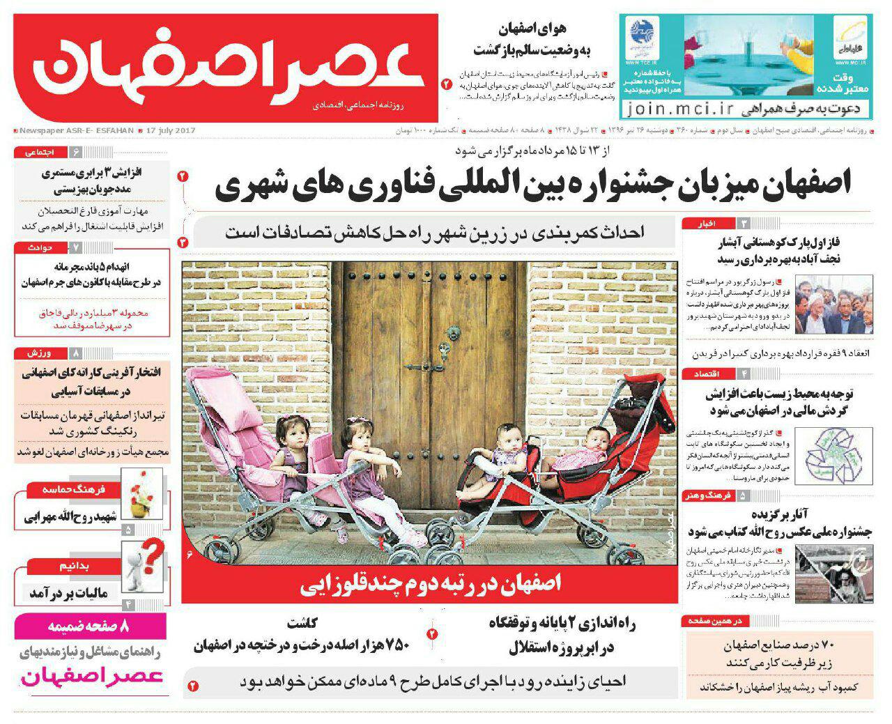 صفحه نخست روزنامه های اصفهان، 26 تیر 1396