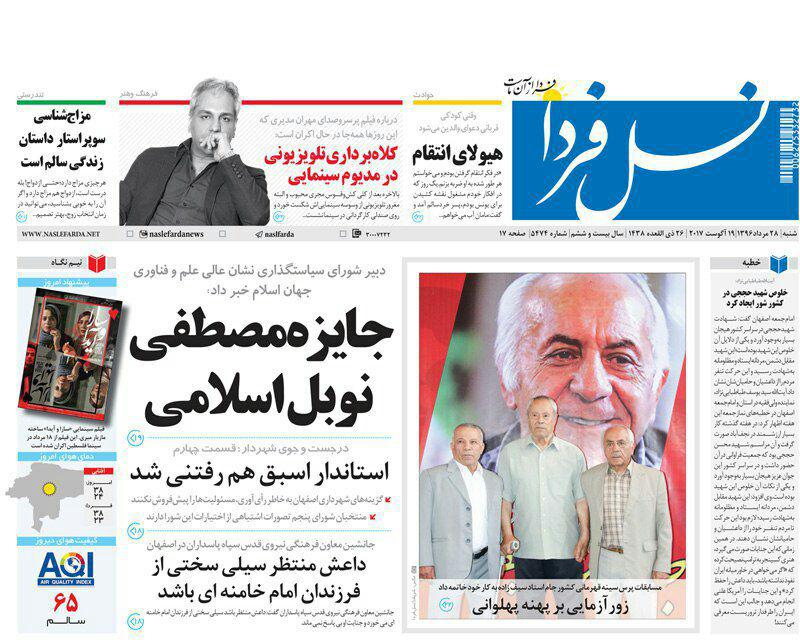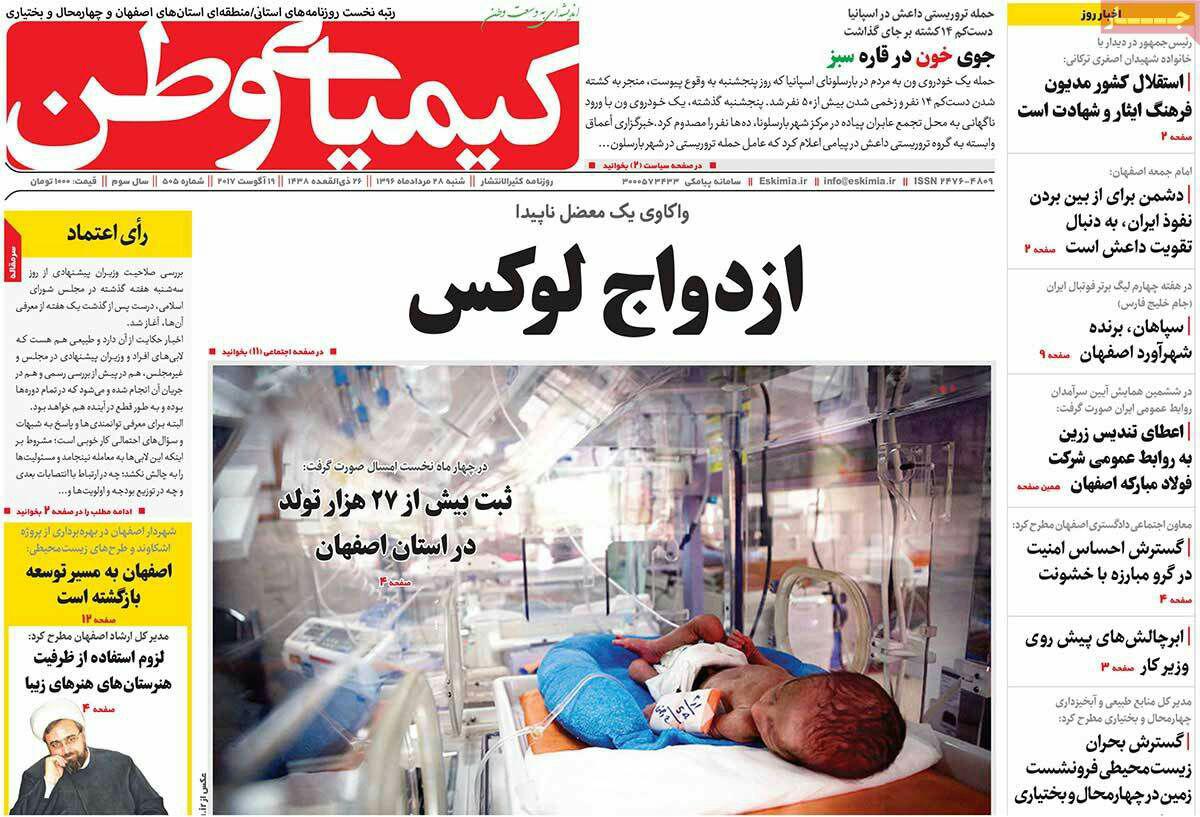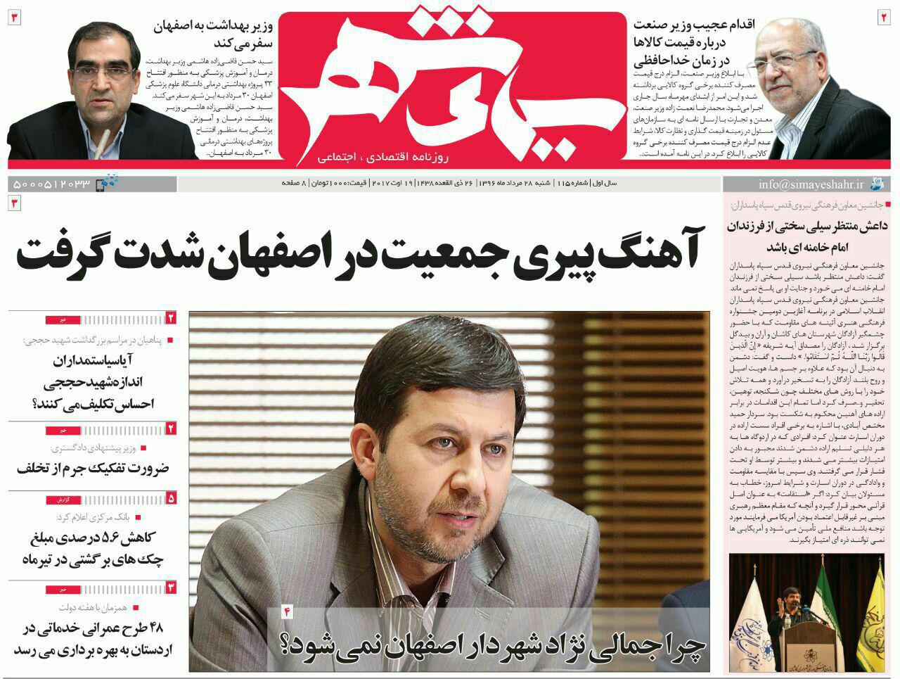 عناوین روزنامه های صبح اصفهان ،بیست و هشتم مرداد 1396