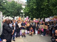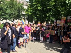 به گزارش خبرنگار سرویس بین الملل خبرگزاری صدا و سیما از لندن، در ادامه اعتراضهای جهانی علیه رئیس جمهور آمریکا و همزمان با مواضع نهادهای مدنی و سیاسی در انگلیس ضد رئیس جمهور این کشور دهها نفر با تجمع مقابل سفارت آمریکا در لندن ضد ترامپ و رویکردهایش شعار دادند.