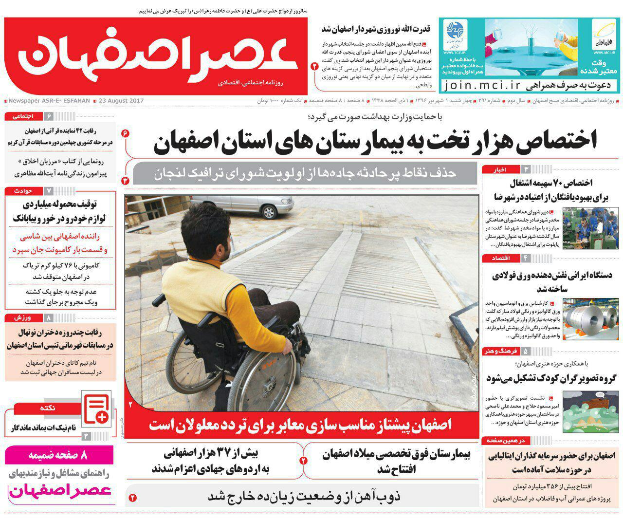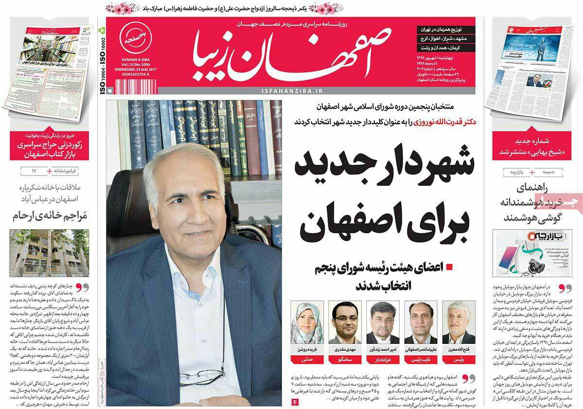 عناوین روزنامه های صبح اصفهان ، یکم شهریور 1396