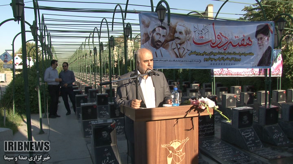 به گزارش خبرگزاری صداوسیمامرکز همدان، در این مراسم معاونان استاندار ومدیران کل دستگاههای اجرایی استان ضمن گرامیداشت یاد وخاطره شهیدان رجایی و باهنر با آرمانهای شهدا وانقلاب وامام راحل تجدید بیعت کردند. آقای خجسته نماینده مردم همدان و فامنین در مجلس در این مراسم با گرامیداشت یاد و خاطره 450 شهید کارمند استان گفت : مجلس شورای اسلامی با اعتماد به وزرای پیشنهادی زمینه های کار در حوزه های مختلف به ویژه اقتصادی را فراهم کرده است.