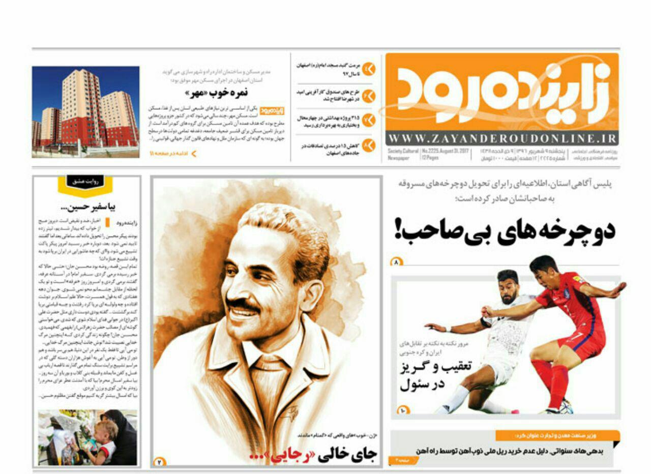 عناوین روزنامه های صبح اصفهان ،نهم شهریور 1396