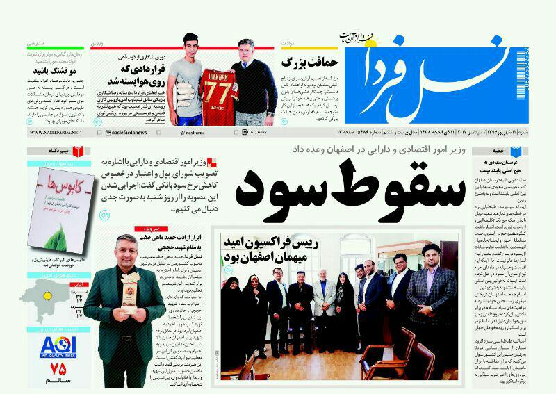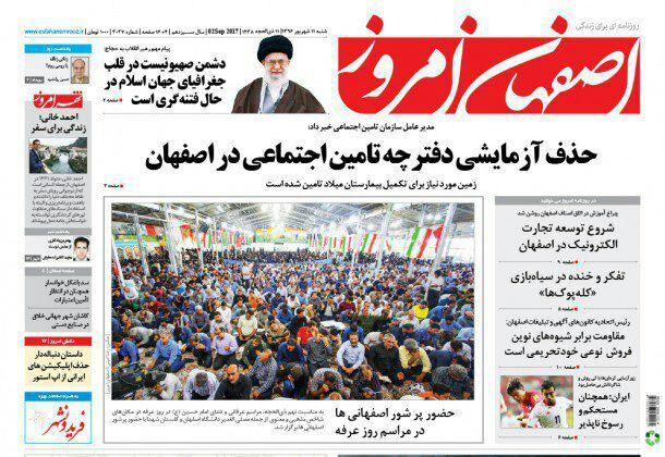 عناوین روزنامه های صبح اصفهان ، یازدهم شهریور 1396