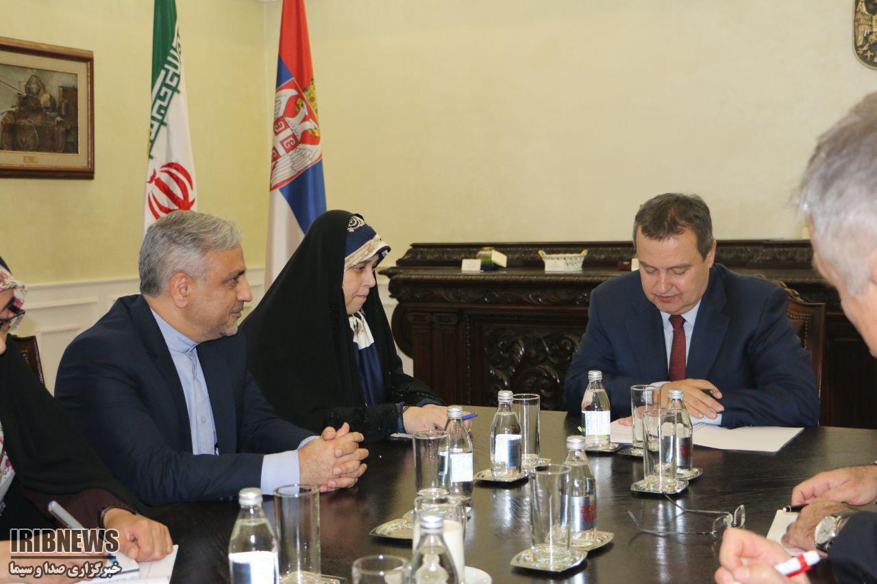 به گزارش خبرگزاری صدوسیما از بلگراد، هیئت پارلمانی کشورمان به ریاست خانم «پروانه سلحشوری» رئیس گروه دوستی پارلمانی ایران و صربستان عصر روز دوشنبه با «ایویتسا داچیچ» معاون اول نخست وزیر و وزیر امور خارجه صربستان در محل کاخ بلگراد دیدار و گفتگو کرد.