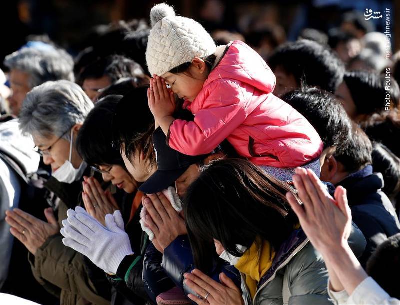 نیایش ابتدای سال در معابد توکیو. مردم این کشور از چند فرقه شرق آسیایی تشکیل شدهاند و بسیاری از آنها معمولاً در مناسبتهای خاص مانند عید و عروسی به معابد فرقه دیگر نیز مراجعه میکنند.