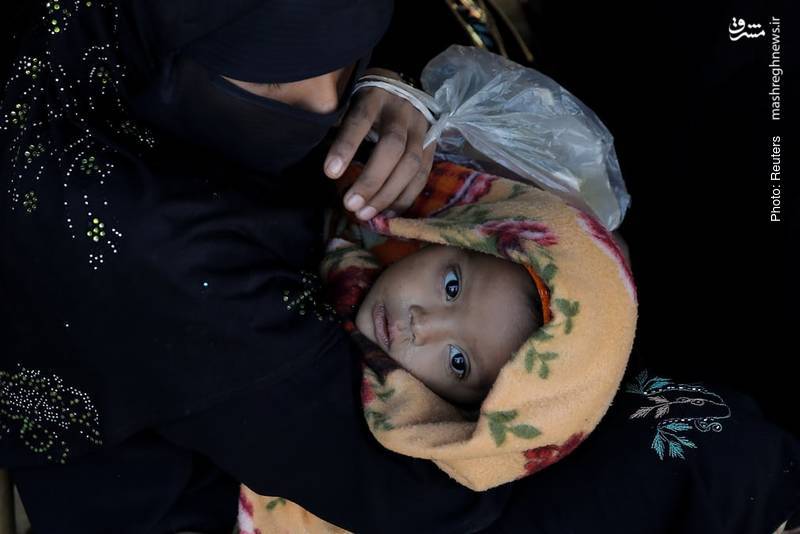 مهاجر روهینگیایی در صف انتظار برای دریافت برنج