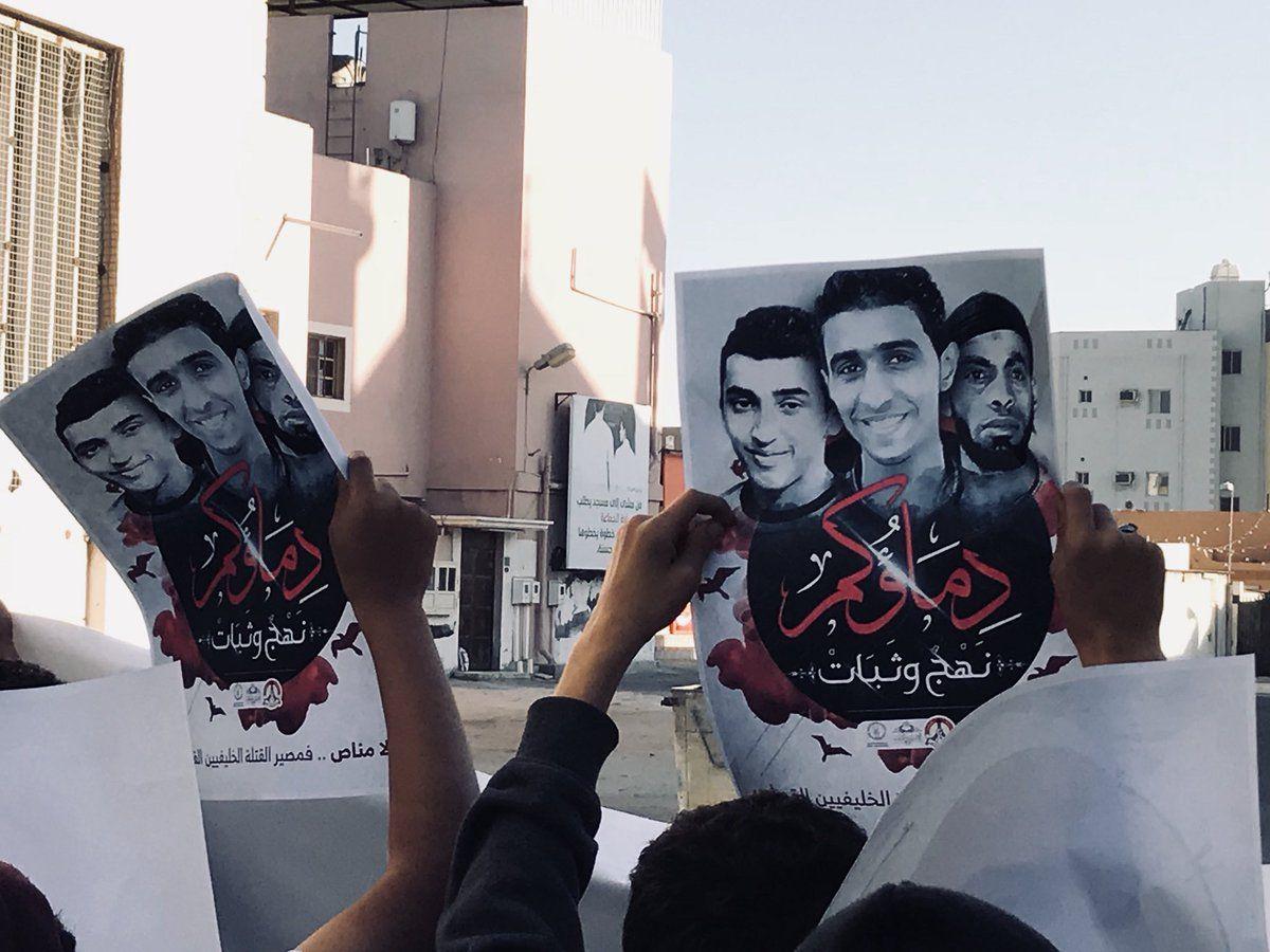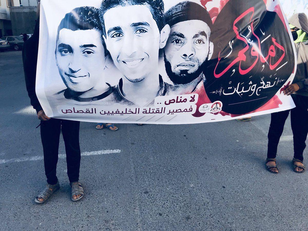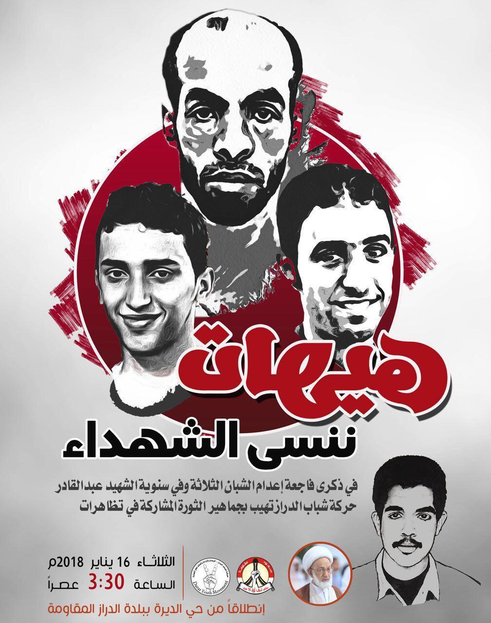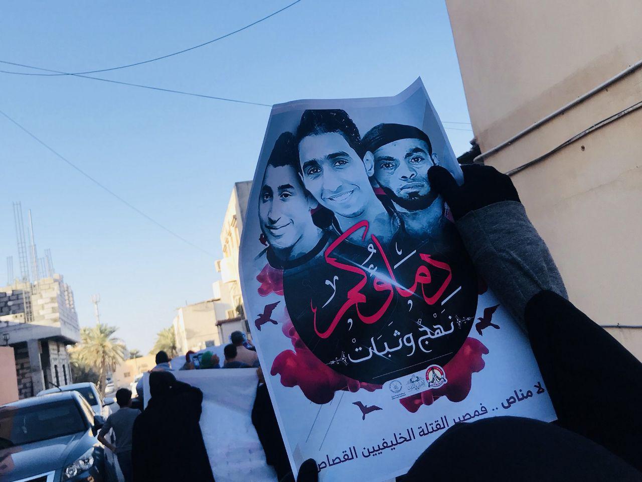 مردم با در دست داشتن تصاويري از آيت الله عيسي قاسم، 3 شهيد تيرباران شده و يکي از شهداي دهه نود اين منطقه، عليه پادشاه بحرين و نظام آل خليفه شعارهايي سر داده و خواستار قصاص وي شدند. مردم همچنين ادامه بازداشت خانگي غير قانوني و محاصره منزل آيت الله عيسي قاسم را محکوم کردند.