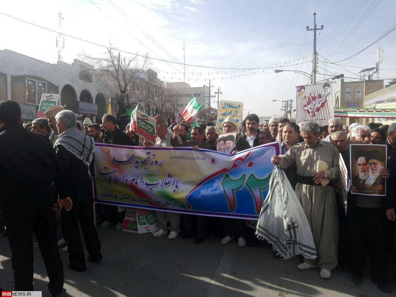 به گزارش خبرگزاری صدا و سیما مرکز کرمانشاه، مراسم راهپیمایی ۲۲ بهمن با حضور پرشور مردم ولایتمدار و همیشه در صحنه کرمانشاه از مسجد جامع آغاز شده و مردم با سر دادن شعارهایی همچون الله و اکبر خامنهای رهبر،ای رهبر آزاده آماده ایم آماده، ۲۲ بهمن ماه یوم الله است یوم الله، مرگ بر آمریکا و... به سمت میدان ازادی و چهار راه ارشاد در حرکت هستند.