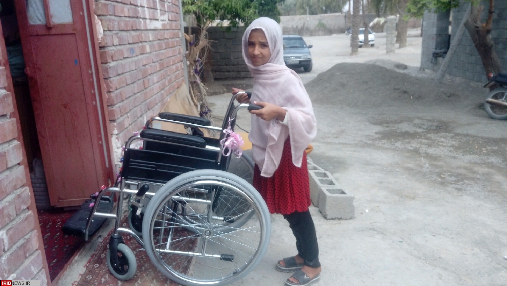 این ویلچر به نمایندگی از دانش آموزان شهید چمران کناردان شهرستان پارسیان هرمزگان به عهدیه ضرغام هدیه شد .