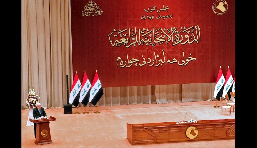 رئیس جمهور عراق در سخنرانی خود در ابتدای آغاز نخستین جلسه مجلس جدید این کشور در بغداد گفت: در لحظه تاریخی قرار داریم که این جلسه همزمان با پیروزی بر تروریسم برگزار می شود. باید به اختیارات نهادهای حکومتی احترام گذاشته شود. بدون تاکید بر اجرای قانون و احترام به آزادی، تشکیل دولت دموکراتیک یکپارچه امکان پذیر نیست. باید با فقر، افراط گرایی و جهالت مبارزه کنیم.