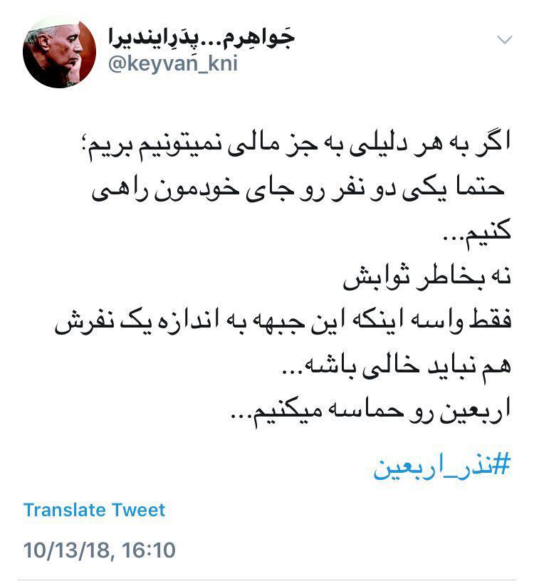 هرکه را می نگرم حال و هوایی دارد دل #جامانده ی ما نیز نوایی دارد از نجف جانب بین الحرمینت ، ارباب #اربعین پای پیاده چه صفایی دارد #عشـاق_اربعیـن #اللهم_ارزقنا_کربلا