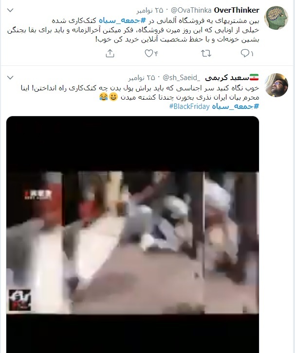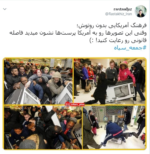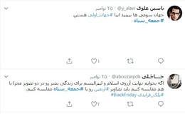 بخشی از محتواهايي را که کاربران در فضای مجازی با هشتک #جمعه_سياه منتشر کرده اند با شما به اشتراک میگذاریم:
