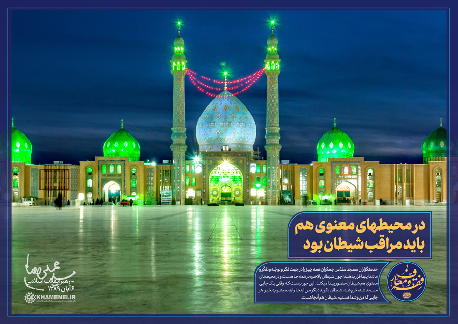 که عُمربنابی ربیعه، شاعر معروف عرب، این شعر را گفته، خب مال همین محلّ رمی جمار و این [گونه] محلها است. در مسجد جمکران هم شیطان حضور دارد، نه اینکه نیست؛ مراقب شیطان باشید. مواظب باشید که هم شیطان به مردم آسیب نرساند، هم به خودِ شما آسیب نرساند. این مراقبتها همان چیزی است که در ادبیّات قرآنی و اسلامی اسمش تقوا است؛ تقوا یعنی همین؛ یعنی انسان دائم مواظب خودش باشد، مراقب خودش باشد. اگر این مراقبت شد، تأثیر شیطان، نفوذ شیطان کم میشود، تیغ شیطان کُند میشود؛ اگر این مراقبت نشد و غافل شدیم، میافتیم دست شیطان و هر کاری خواست با ما میکند؛ مثل جسم بیجانی یا بیهوشی که بیفتد دست یک آدم هوشمند؛ به هر طرف بخواهد، آن را برمیگرداند؛ اگر غفلت کردیم، شیطان با ما این کار را میکند. شیطان در نماز هم میآید، شیطان در طواف هم میآید، شیطان در دعا هم میآید، شیطان در حال توسّل هم میآید؛ خیلی باید مراقب بود.
