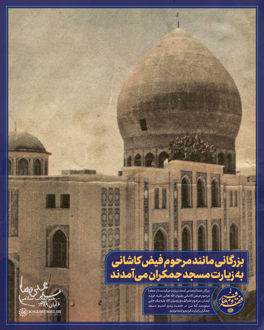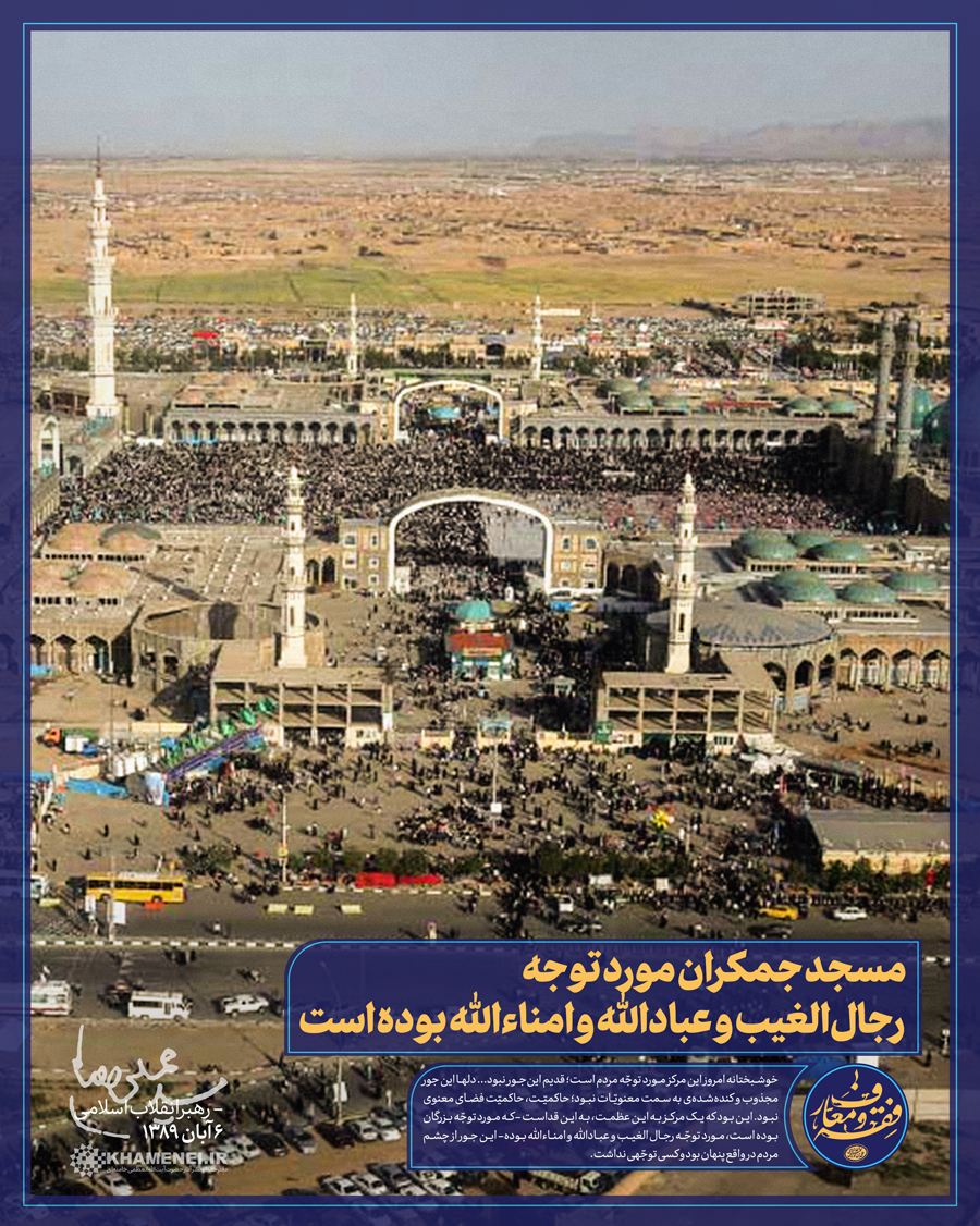 خوشبختانه امروز این مرکز مورد توجّه مردم است؛ قدیم اینجور نبود. سالهایی که ما در قم بودیم، شبهای چهارشنبه یا شبهای جمعه یک تعداد معدودی از افراد میرفتند در همان مسجد که یک محلّ کوچک محدودی بود، زیارتی میکردند و خیلی بندرت کسانی در آنجا میماندند؛ خیلی محدود بود. خود ما که چند سال در قم بودیم، چند مرتبه بیشتر توفیق پیدا نکردیم برویم مسجد جمکران؛ رایج نبود، متداول نبود، دلها این جور مجذوب و کندهشدهی به سمت معنویّات نبود؛ حاکمیّت، حاکمیّت فضای معنوی نبود. این بود که یک مرکز به این عظمت، به این قداست -که مورد توجّه بزرگان بوده است، مورد توجّه رجال الغیب و عبادالله و امناءالله بوده- این جور از چشم مردم در واقع پنهان بود و کسی توجّهی نداشت. بزرگانِ علما اینجا میآمدند، زیارت میکردند، [از جمله] مرحوم فیض کاشانی رضوان الله تعالی علیه. فرزند ایشان، مرحوم علمالهُدیٰ(۱) رضوان الله علیه یک جایی مینویسد که من در خدمت پدرم آمدیم مسجد جمکران را زیارت کردیم و اینجا بودیم.