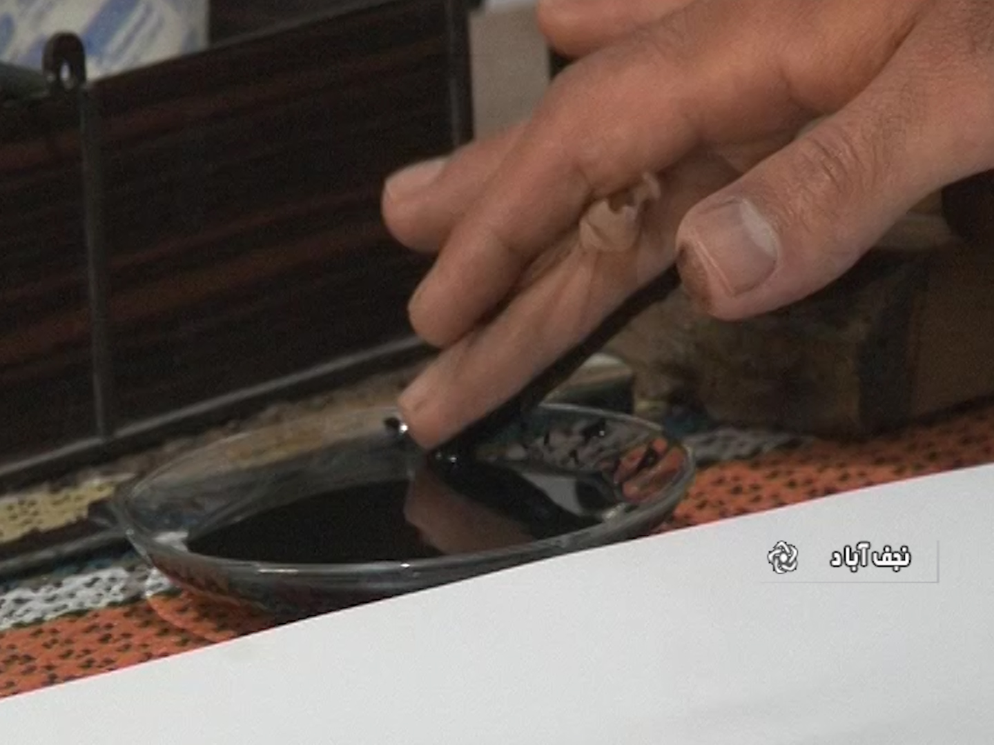 هنرمند نجف آبادی سی تابلو خط نستعلیق با انگشت به جای قلم نگارش کرده است.