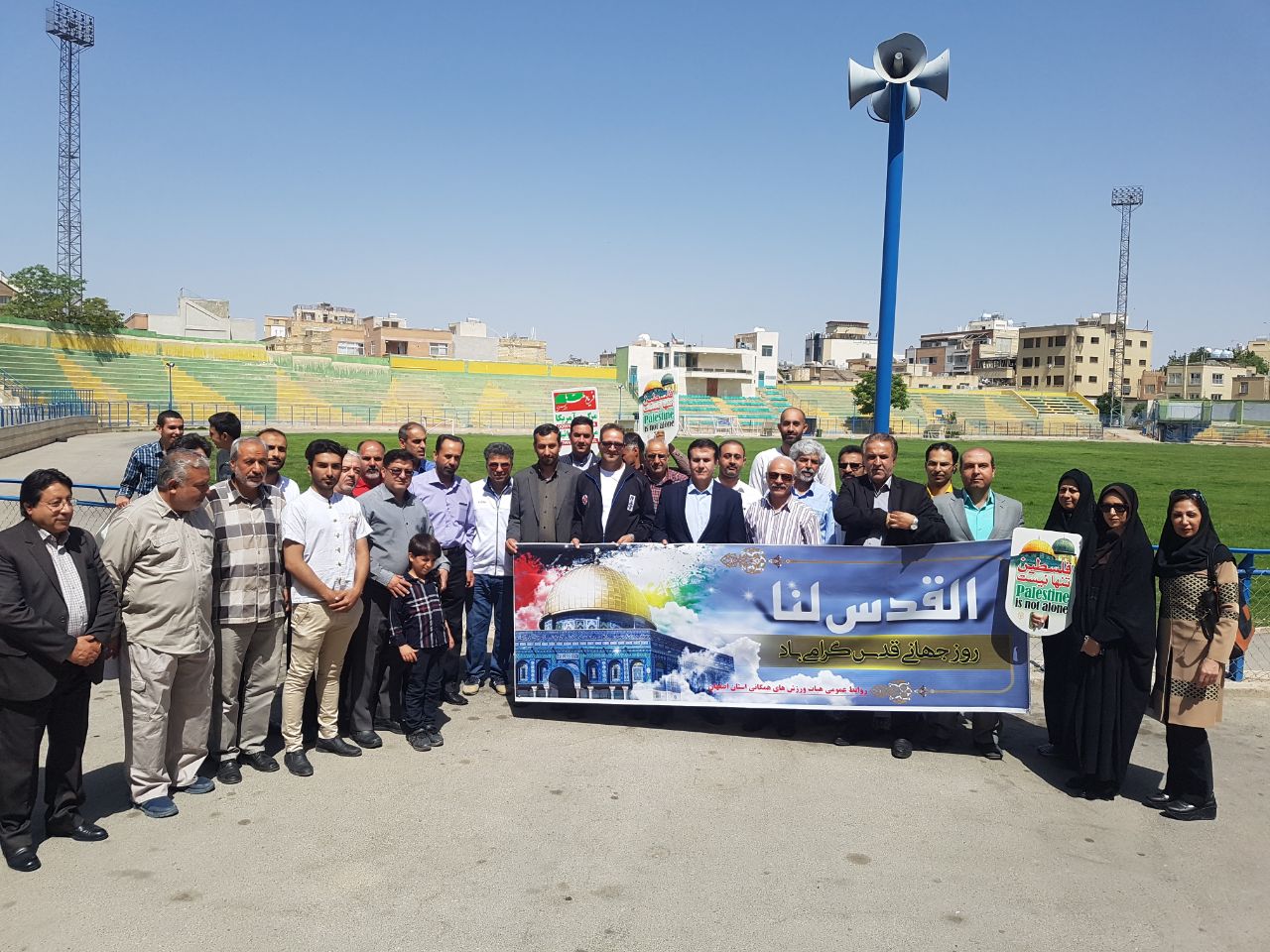 ورزشکاران استان از تکواندو کاران ، کشتی گیران ، کارته کاران ، شناگران ، ووشوکاران ، فوتبالیست ها و پهلوانان زورخانه ای با سر دادن شعارهای مرگ بر آمریکا و اسرائیل، آزادی قدس شریف و نابودی رژیم صهیونیستی را خواستار شدند.