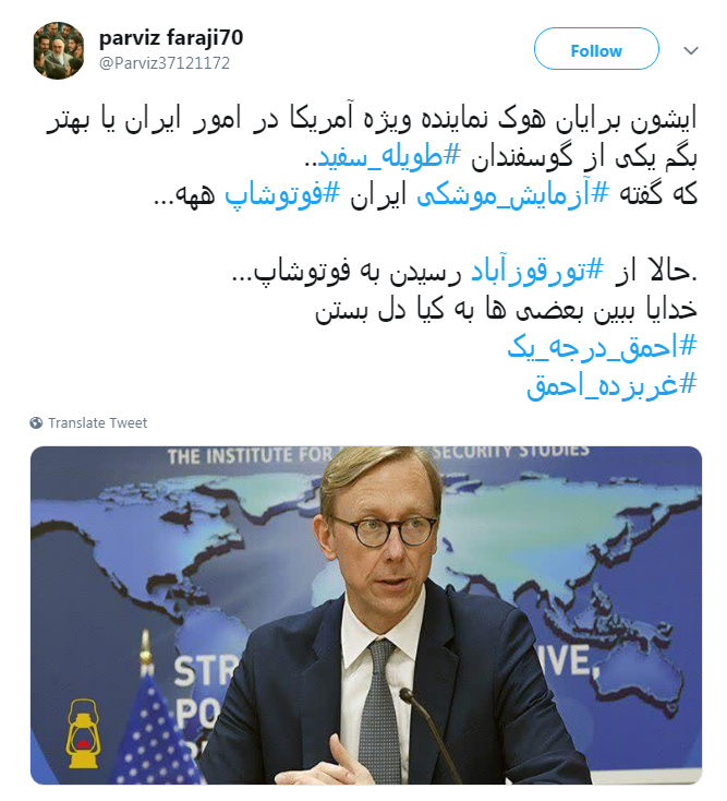 به گزارش سرويس فضاي مجازي خبرگزاري صدا و سيما :برایان هوک نماینده ویژه آمریکا در امور ایران در اظهاراتی بیاساس مدعی شد که تصاویر مربوط به قدرت موشکی کشورمان فتوشاپ است.