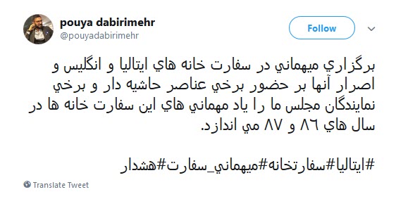 واکنش کاربران به پارتی مختلط سفارت ایتالیا