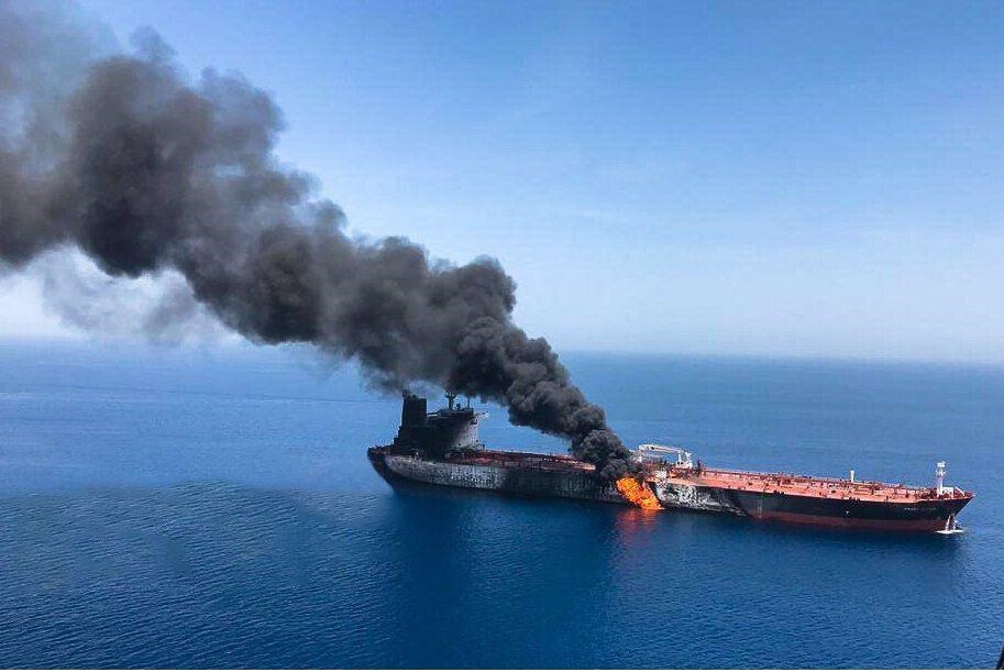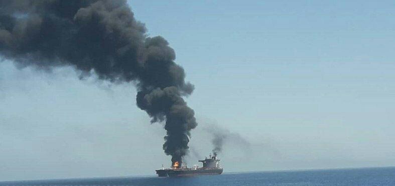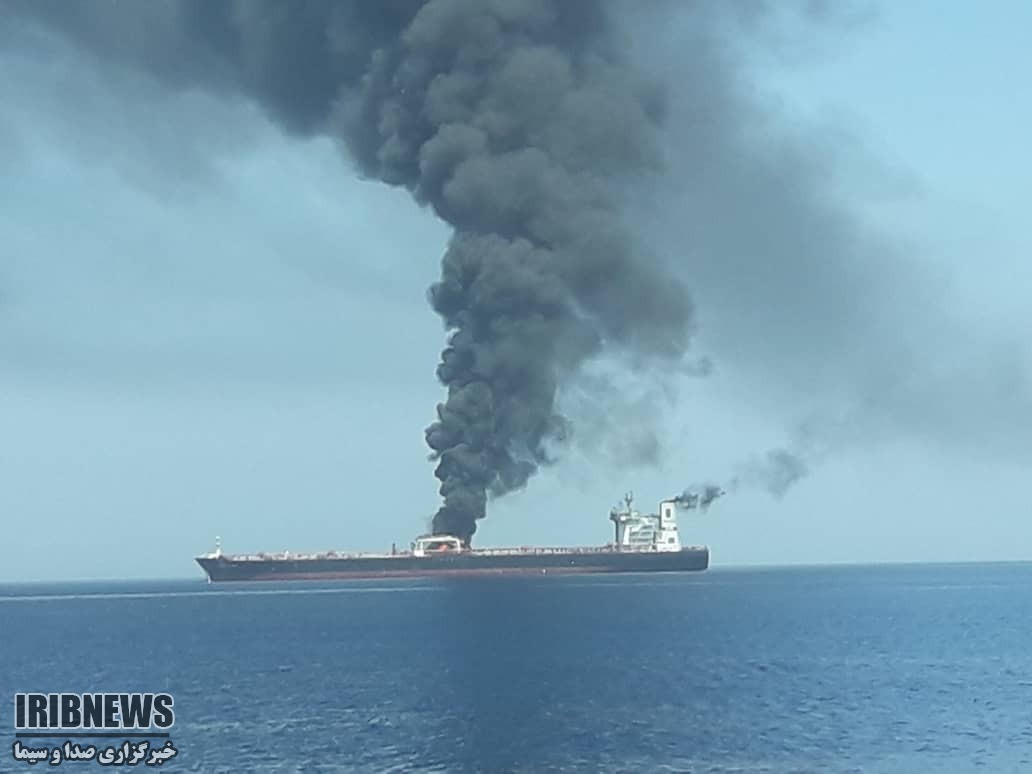 اولین فیلم از آتش سوزی کشتی نفتکش در دریای عمان