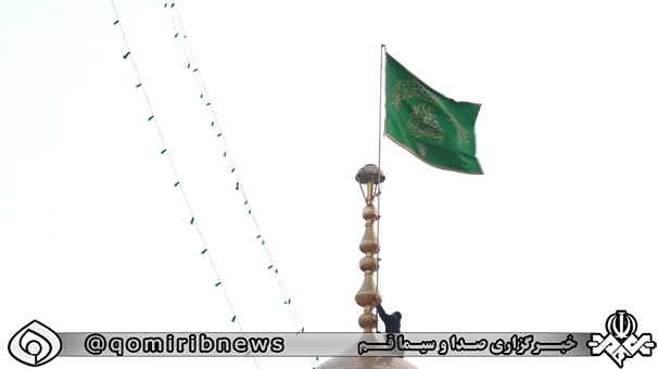 برافراشته شدن پرچم سبز متبرک حرم رضوی بر گنبد بارگاه بانوی کرامت