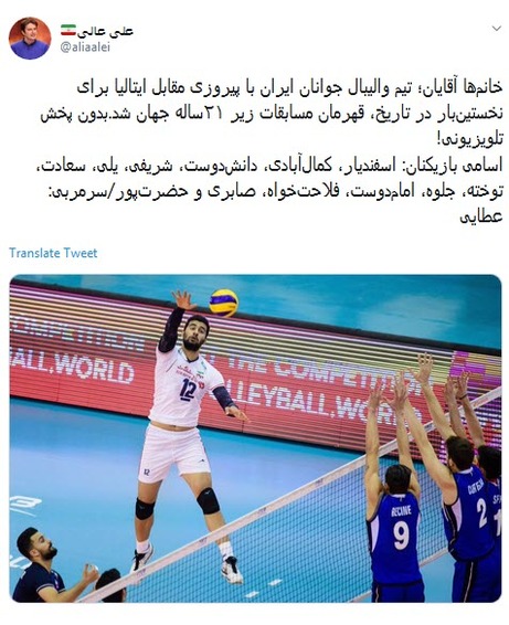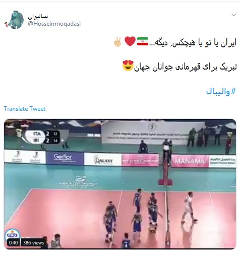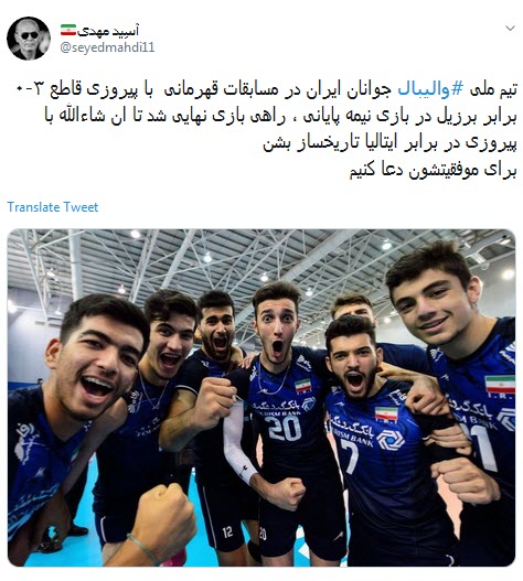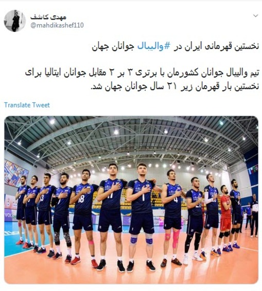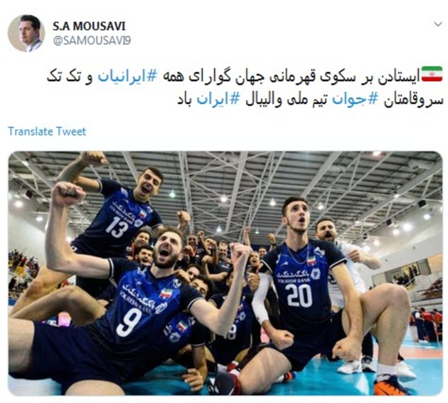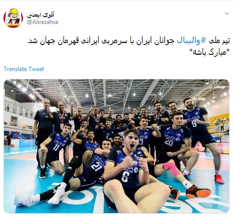 قهرمانی غرورآفرین سروقامتان تیم ملی والیبال جوانان در رقابتهای جهانی، با خوشحالی و شادی کاربران فضای مجازی همراه شد و با هشتگ # قهرمان در صفحه توئیتر به والیبالیستها تبریک گفتند.