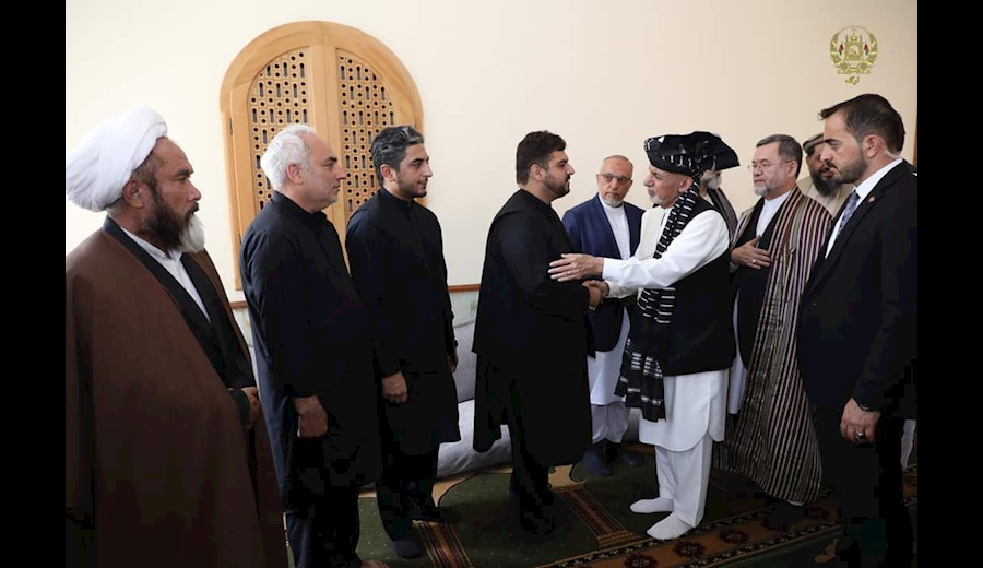 مراسم بزرگداشت آیت الله محمد آصف محسنی از علمای شیعه افغانستان با حضور محمد اشرف غنی در مسجد جامع قصر دلگشای ارگ ریاست جمهوری، برگزار شد