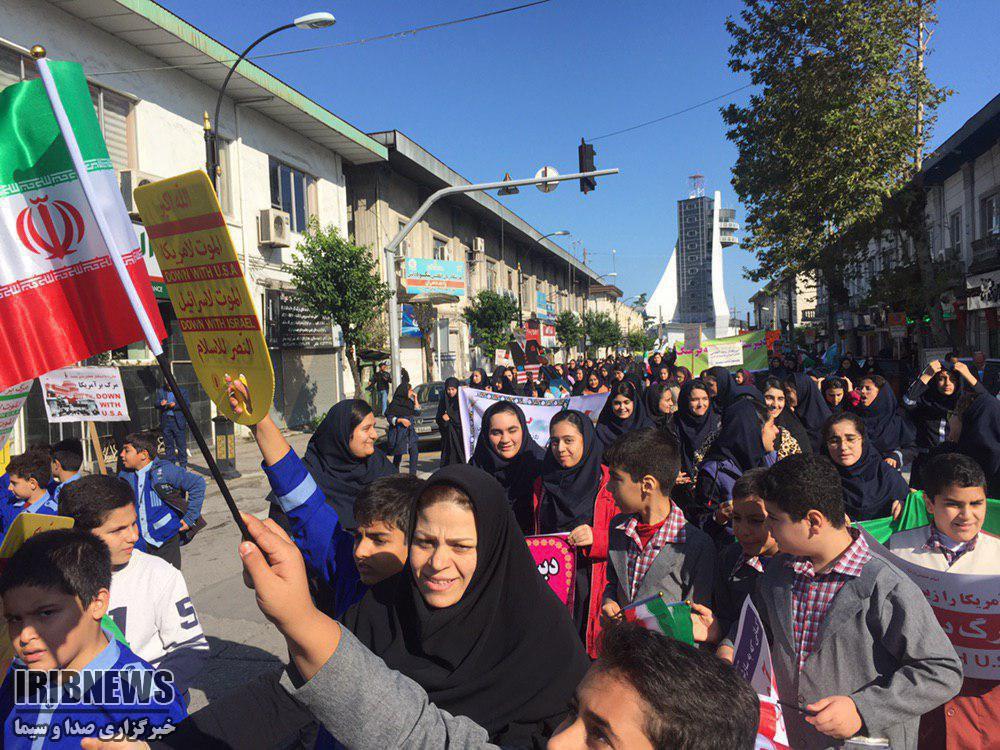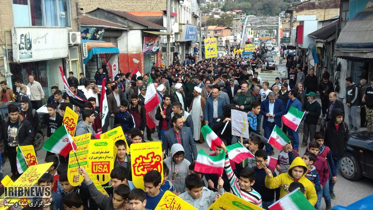 در راهپیمایی یوم الله ١٣ آبان در زاهدان هم که با حضور پرشور قشرهای مختلف مردم از میدان آزادی این شهر تا تقاطع خیابان امام خمینی (ره) برگزار شد، شرکت کنندگان تاکید کردند: هیچگاه از آرمانهایشان در تداوم ارزشهای انقلاب اسلامی دست برنمی دارند و در مقابل آمریکای زورگو تا آخر ایستاده اند.