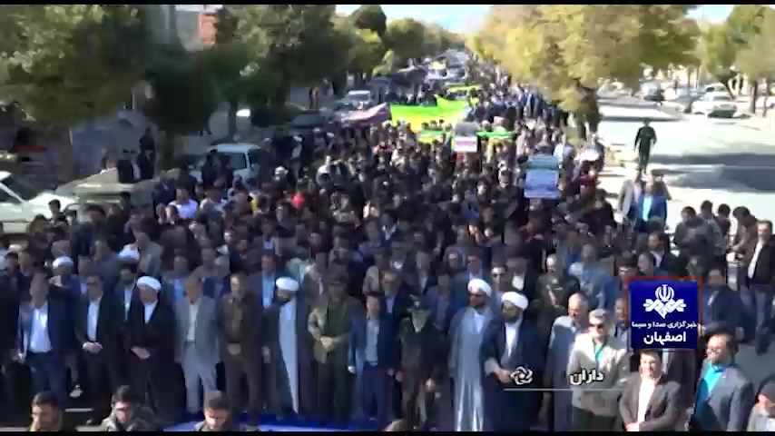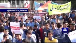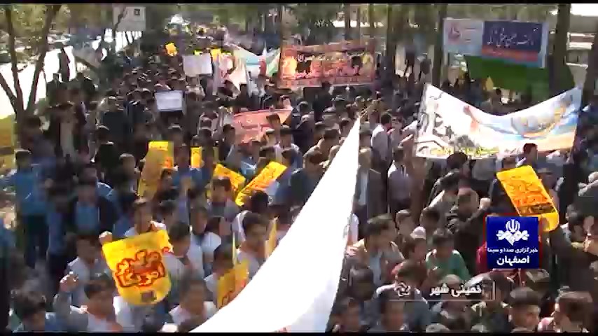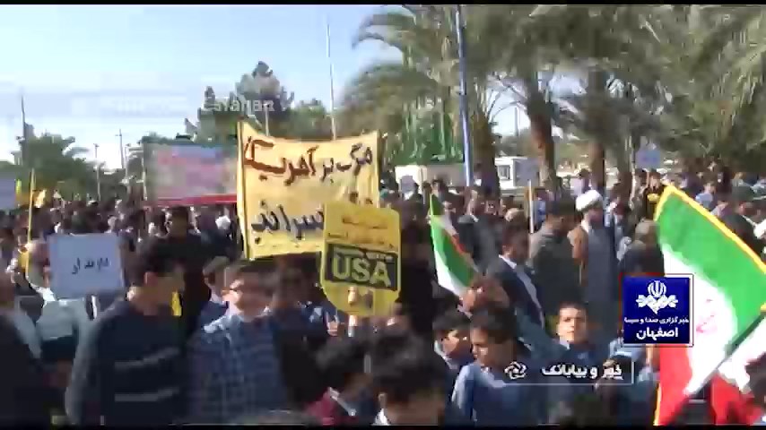 به گزارش خبرگزاری صداوسیما،مرکز اصفهان؛ مردم شهرهای سمیرم ،خور ،داران، فریدونشهر،نجف آباد، اردستان،لنجان،کاشان و خمینی شهر به میدان آمدند تا خشم و انزجار خود را از آمریکای جنایتکار و استکبار جهانی فریاد بزنند.