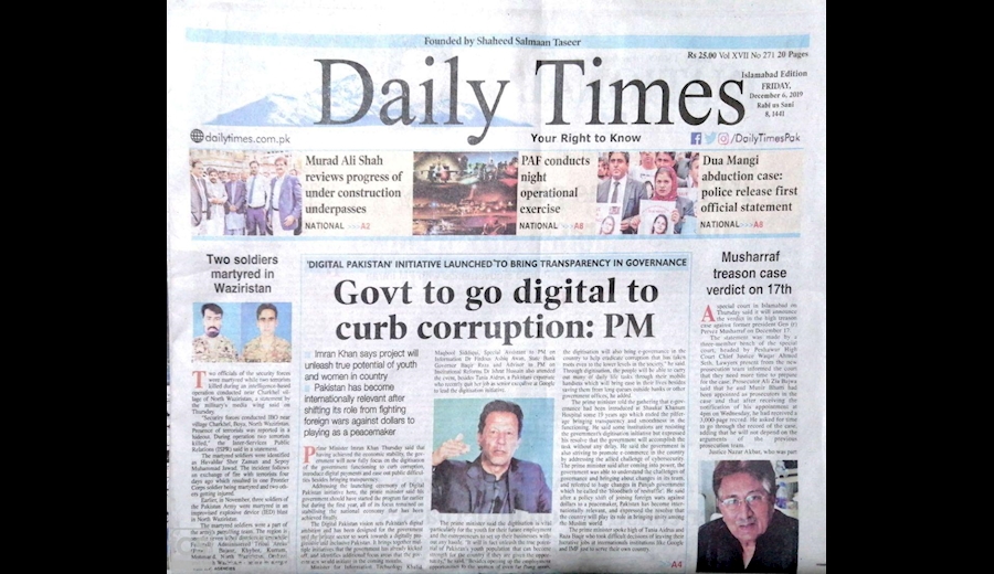 - نخست وزیر پاکستان: دولت از روش دیجیتالی برای مبارزه با مفاسد مالی استفاده خواهد کرد.