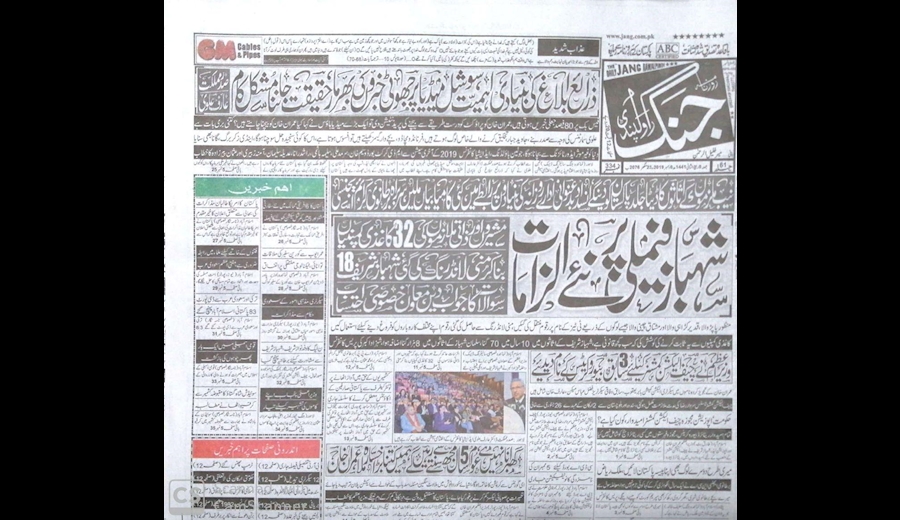 - «شهزاد اکبر» مشاور ویژه نخست وزیر پاکستان: دارایی‌های خانواده «شهباز شریف» رئیس حزب مسلم لیگ نواز در ۱۰ سال گذشته ۷۰ برابر افزایش یافت.