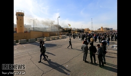 تصاویری از آتش زدن درب سفارت آمریکا در بغداد