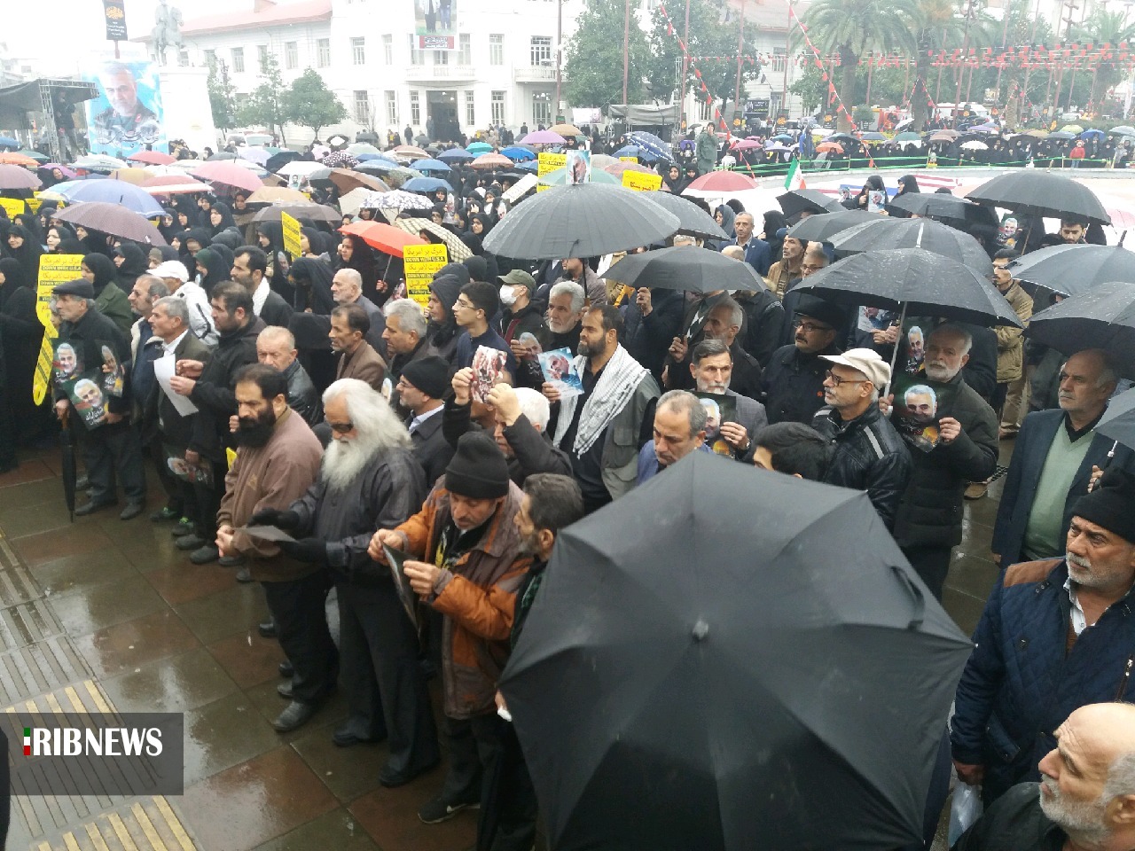مردم انقلابی و قدرشناس دیار میرزا امروز برای پاسداشت سردار شهید حاج قاسم سلیمانی در رشت اجتماع کردند.