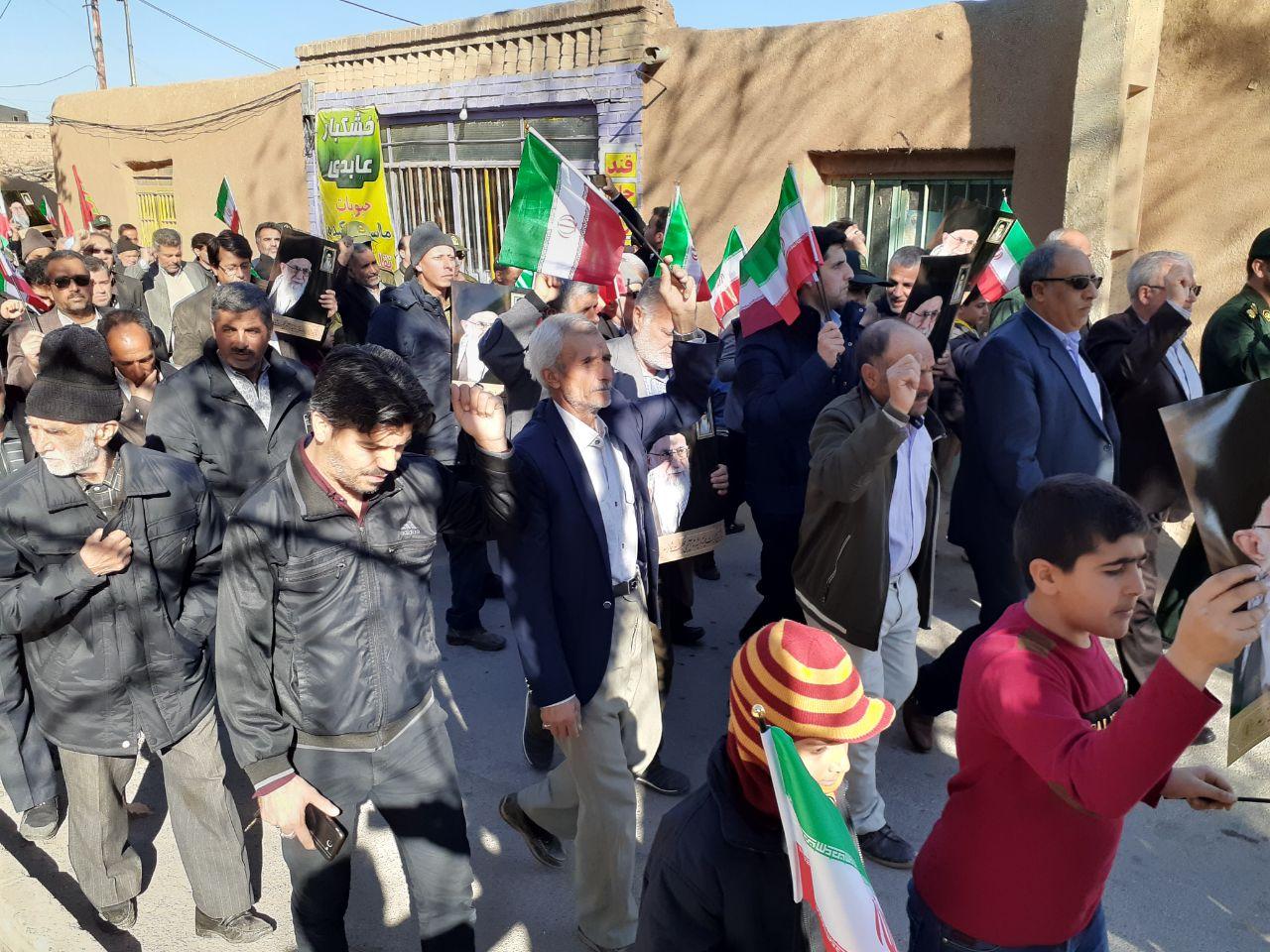 راهپیمایی با سردادن شعارهای مرگ بر آمریکا ، مرگ بر اسرائیل و خونی که در رگ ماست هدیه به رهبر ماست ، ایستادگی خود در برابر هجمه های استکبار جهانی و پایبندی به ارزش های نظام و انقلاب را به نمایش گذاشتند.