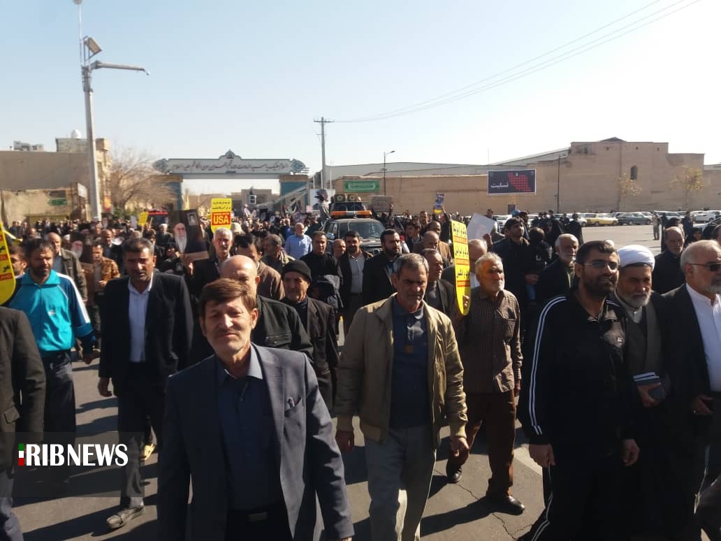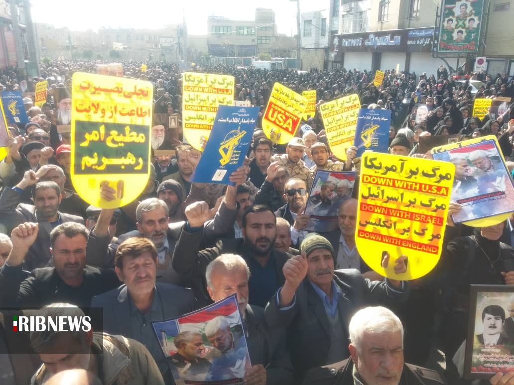 راهپیمایان با سر دادن شعار‌های مرگ بر آمریکا و مرگ بر اسراییل از اقدام شجاعانه و باصلابت سپاه پاسداران انقلاب اسلامی در برابر آمریکای جنایتکار حمایت و با خانواده‌های داغدار سانحه هوایی اعلام همدردی کردند.