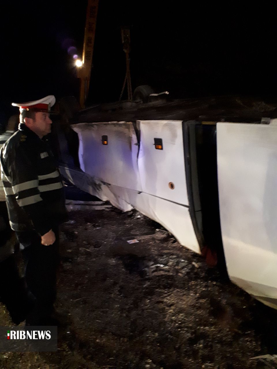 صبح امروز یک دستگاه اتوبوس در اتوبان زنجان – قزوین واژگون شد .