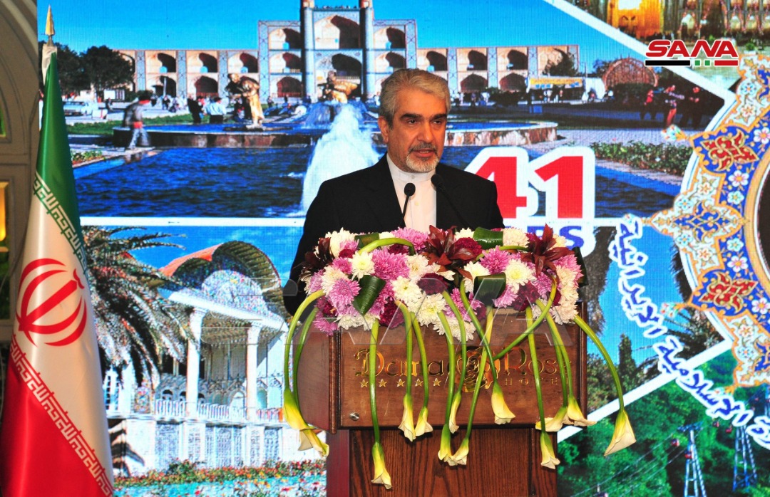 مراسم جشن پیروزی انقلاب اسلامی در سفارت ایران در دمشق برگزار شد و "جواد ترک آبادی"، سفیر کشورمان در سوریه در این مراسم تاکید کرد، ایران به ایستادگی خود در کنار سوریه در جنگ علیه تروریسم و بازسازی ویرانیهای ناشی از حملات و اقدامات تروریستها ادامه خواهد داد.
