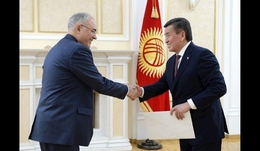 سورنبای جین بکوف، رئیس جمهور قرقیزستان پس از تقدیم استوارنامه "سعید خرازی" سفیر ایران، گسترش روابط همه جانبه با ایران را خواستار شد