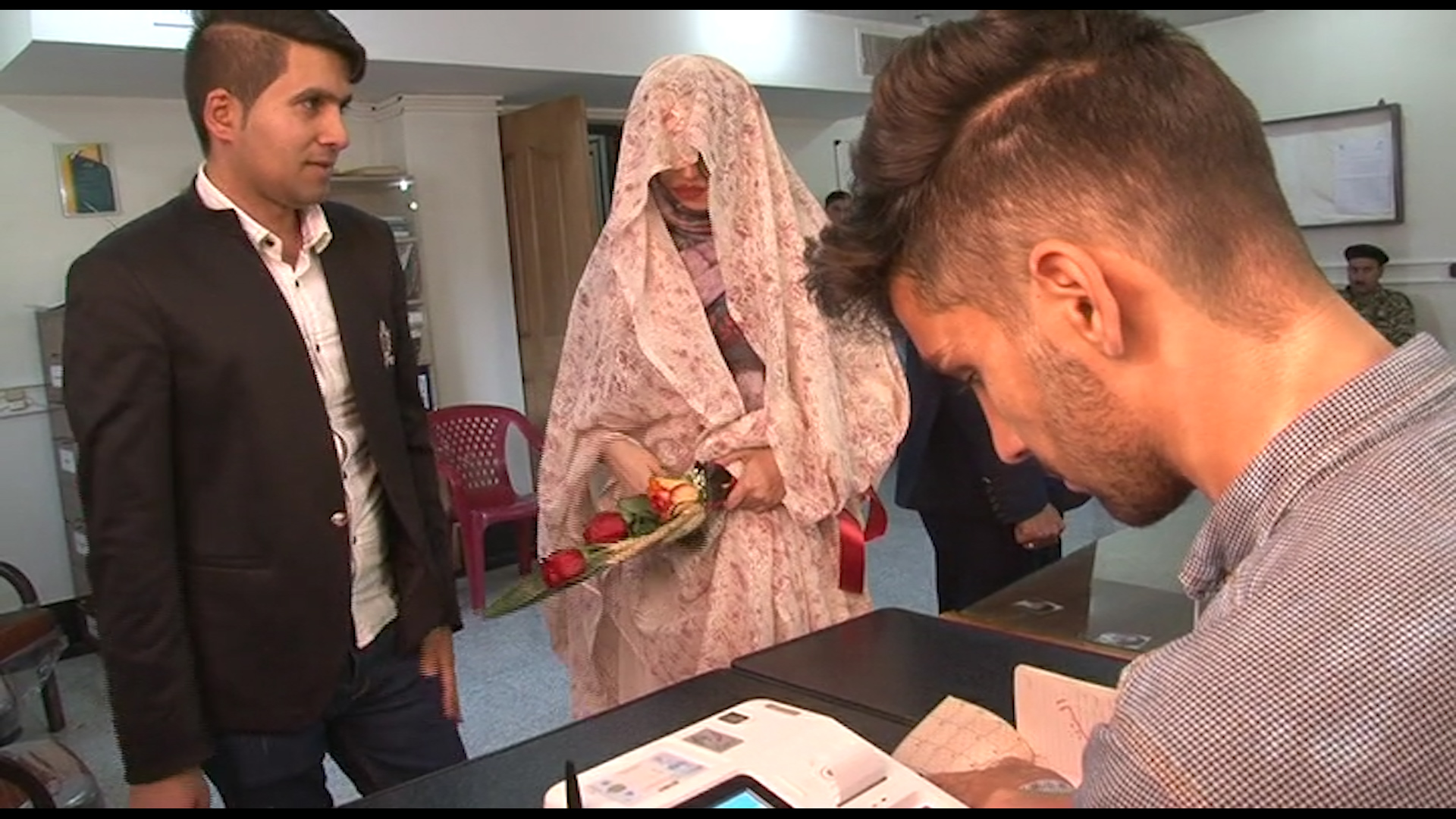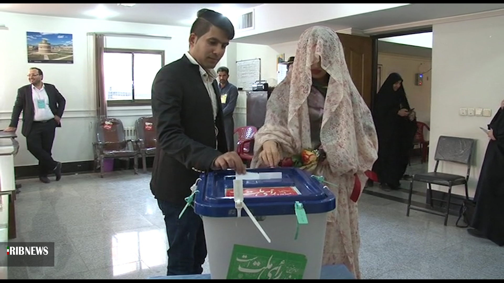 به گزارش خبرگزاري صدا وسيما، مرکز اصفهان ؛ این عروس و داماد جوان دقایقی پیش با حضور در یکی از شعب رأی گیری در خمینی شهر ، رای خود را در صندوق انداختند .