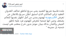 کاربر دیگری نوشت: «این بار سعودیها جرات نکردند همانند گذشته انگشت اتهام را به سمت ایران بگیرند. آیا آنان واقعا فکر و اعتراف کردند که آن موشکها ساخت یمن است و از یمن پرتاب شده است یا حماقت و تصمیمشان به سکوت در برابر اتهام ایران به طور ضمنی به این نکته اشاره دارد که آنان هم در جنایت ترور شهید سلیمانی نقش دارند؟»