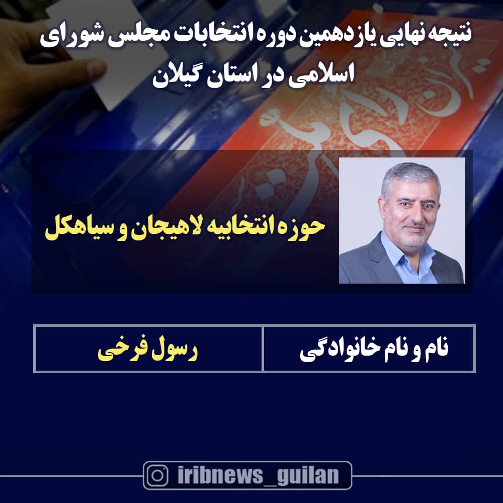 به گزارش خبرگزاری صدا و سیما مرکز گیلان؛ رئیس ستاد انتخابات گیلان گفت: رسول فرخی میکال با کسب ۱۸ هزار و ۶۲۰ رای منتخب حوزه انتخابیه لاهیجان – سیاهکل شد. محمود قاسم نژاد افزود: در حوزه انتخابیه لنگرود پرویز محمد نژاد قاضی محله با کسب ۲۲ هزار و ۶۳۳ رای منتخب مردم شد. وی گفت: در حوزه انتخابیه تالش، رضوانشهر و ماسال هم حسن محمدیاری با کسب ۳۰ هزار و ۸۲۷ رای منخب مردم شد.